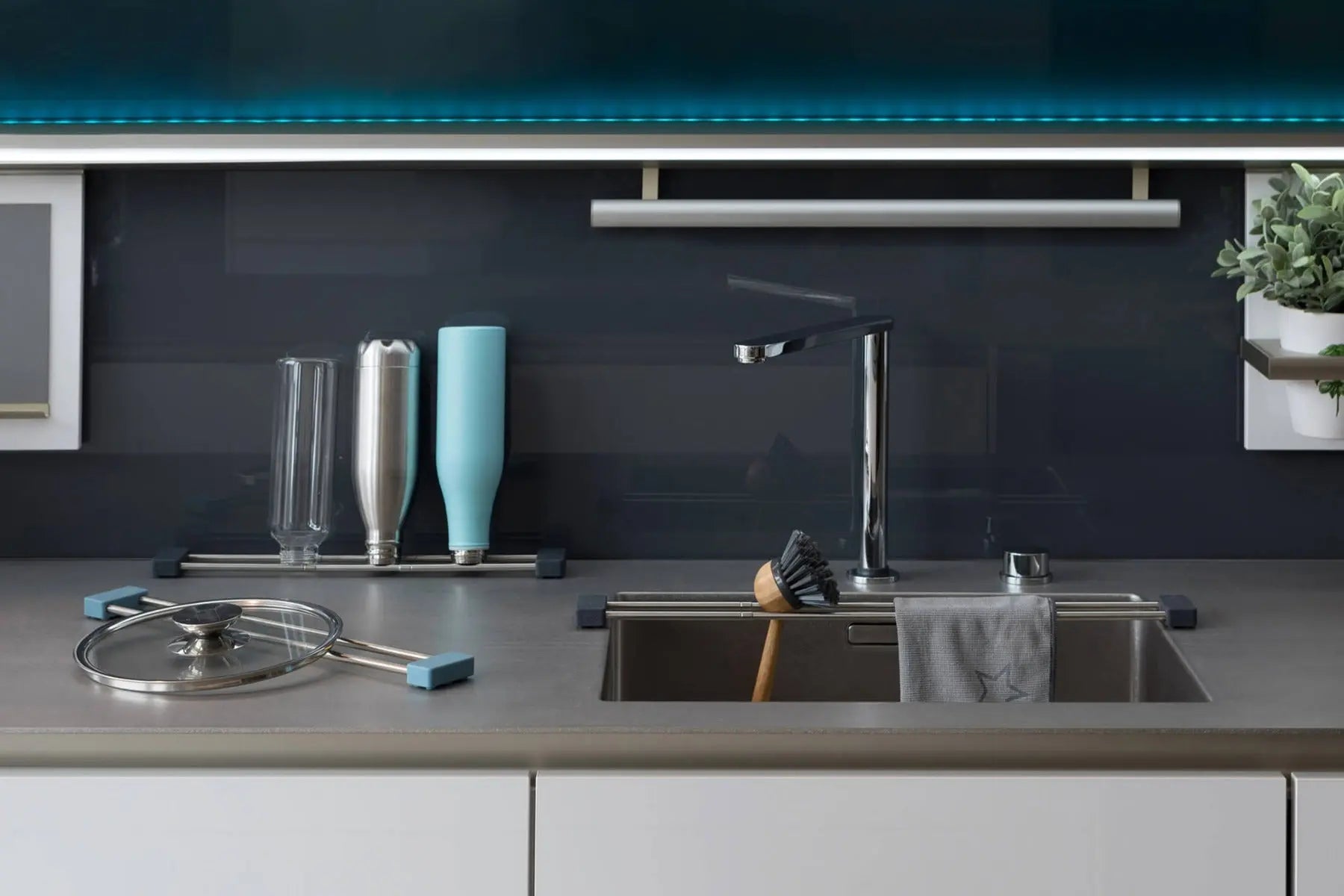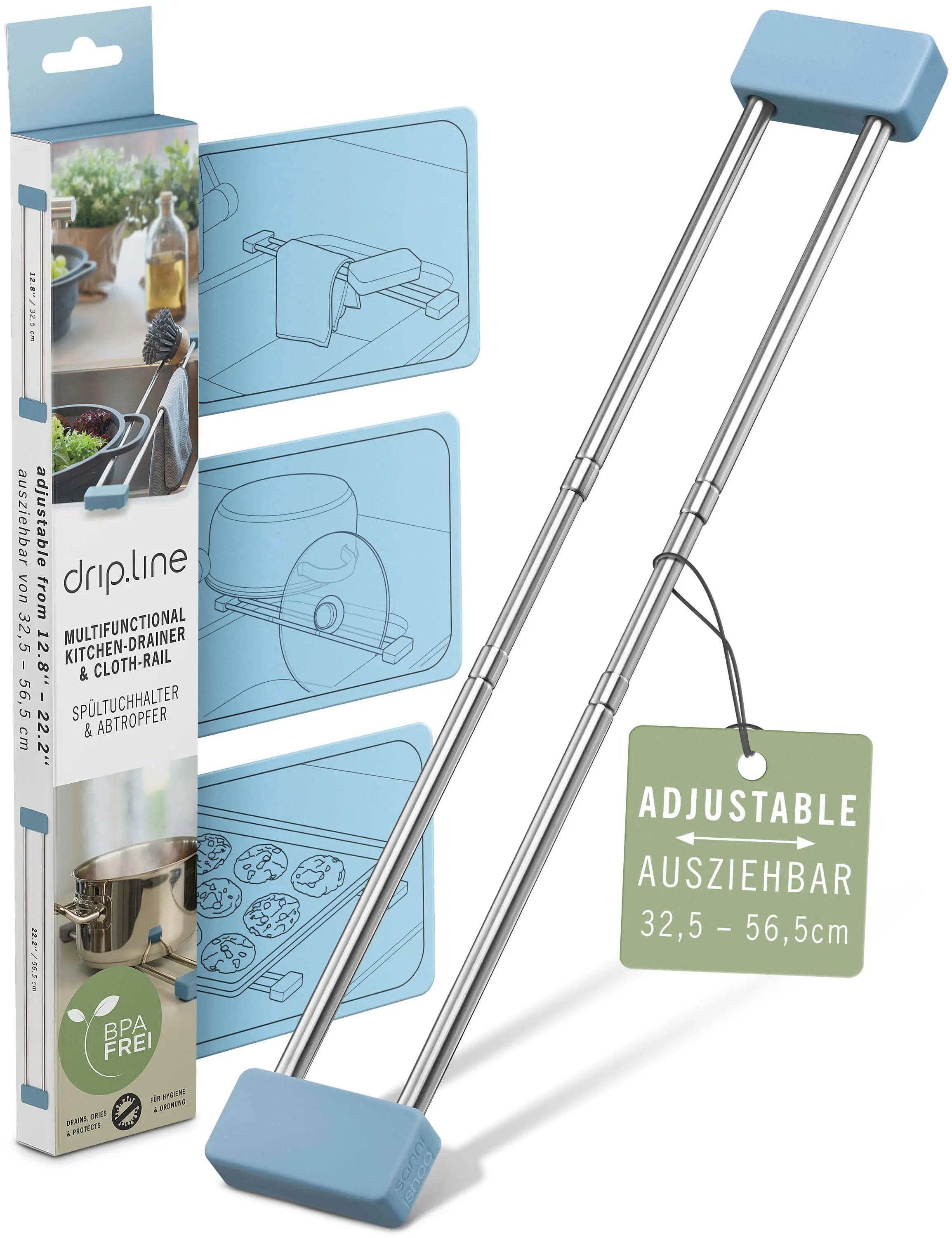 Kunden begeistert vor allem die Flexibilität von drip.line, die sich dank der Teleskopfunktion perfekt an jede Spüle anpasst. Die hochwertigen Materialien aus rostfreiem Edelstahl und BPA-freiem Silikon überzeugen ebenso wie das durchdachte Design, das Platz für Trinkflaschen schafft und gleichzeitig für Ordnung sorgt. Die spülmaschinengeeignete und hitzebeständige Ausführung macht die Handhabung unkompliziert und praktisch. Zudem sind die modernen Farben ein echter Blickfang in jeder Küche.