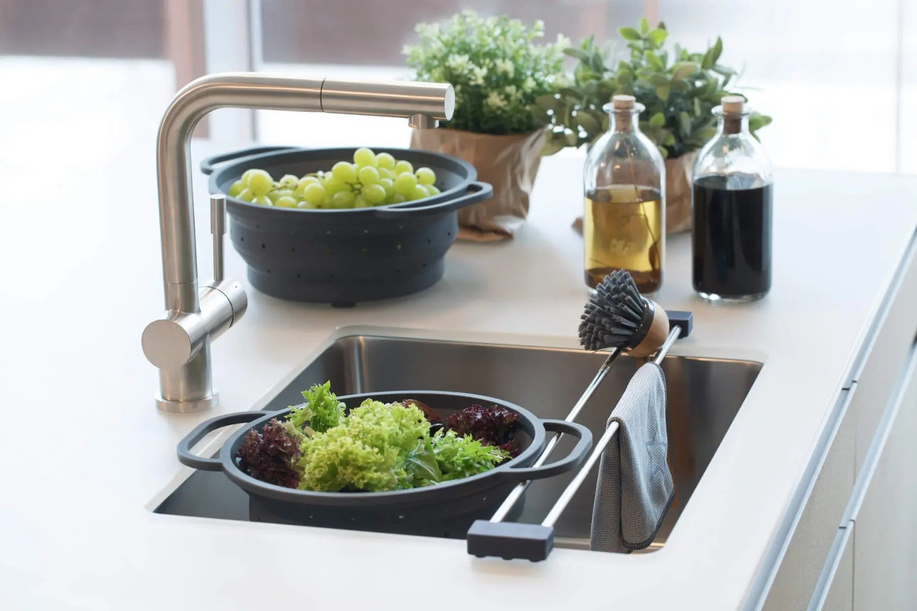 Teleskopfunktion für jede Spüle, Praktisches Abtropfen ohne Befestigung, Hitzebeständig und spülmaschinengeeignet