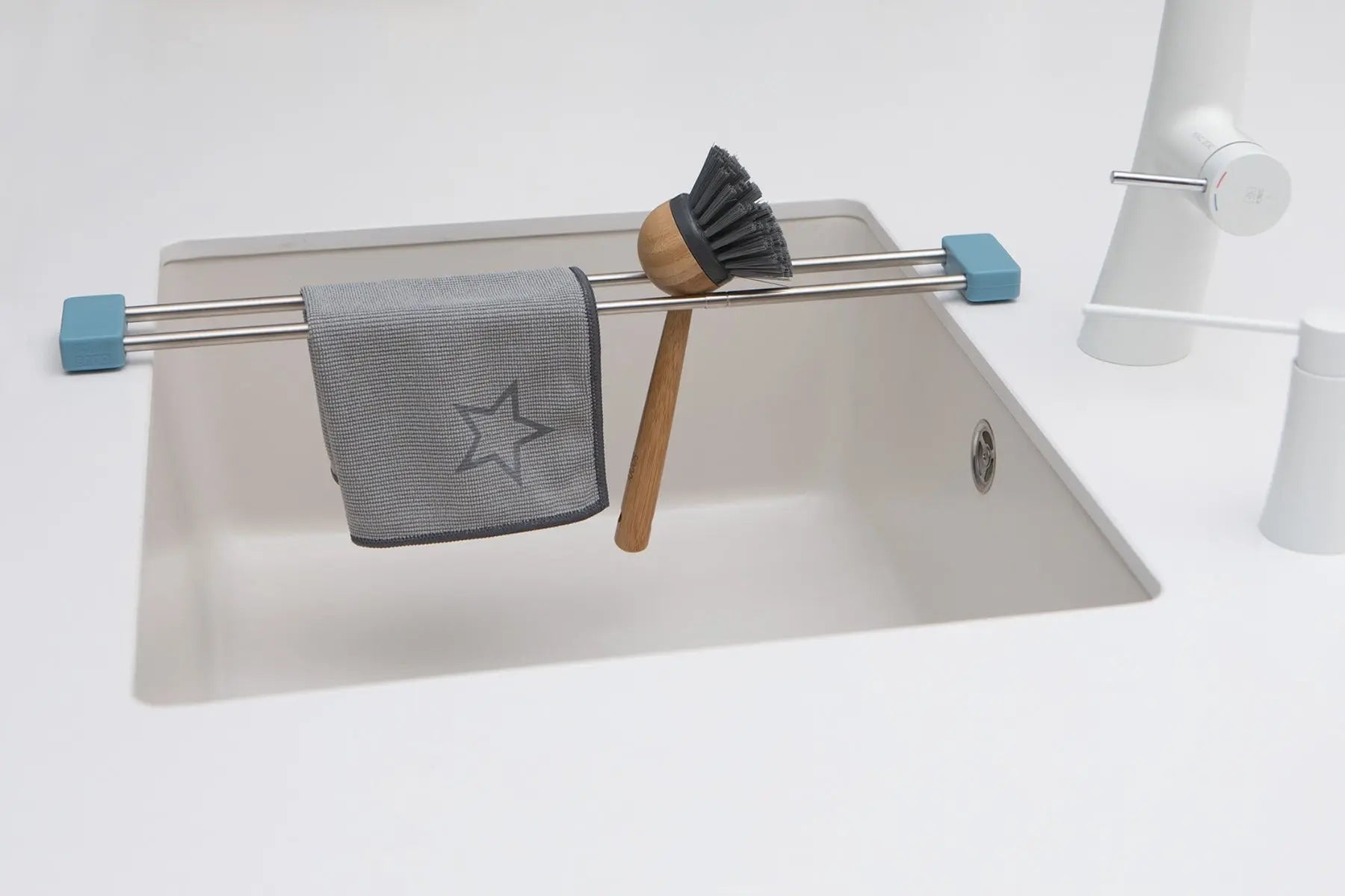 Haben Sie sich schon mal über den Lappen an der Armatur geärgert? Oder den unschönen, nassen Schwamm, der neben der Spüle liegt? Auf kleinem Raum keinen geeigneten Platz zum schrägen Abtropfen von Trinkflaschen gefunden? drip.line ist Sanni Shoos Lösung für diese Probleme. Dank Teleskopfunktion passt sich drip.line jeder Spüle an, und kann unkompliziert und ohne Befestigung einfach darüber gelegt werden.