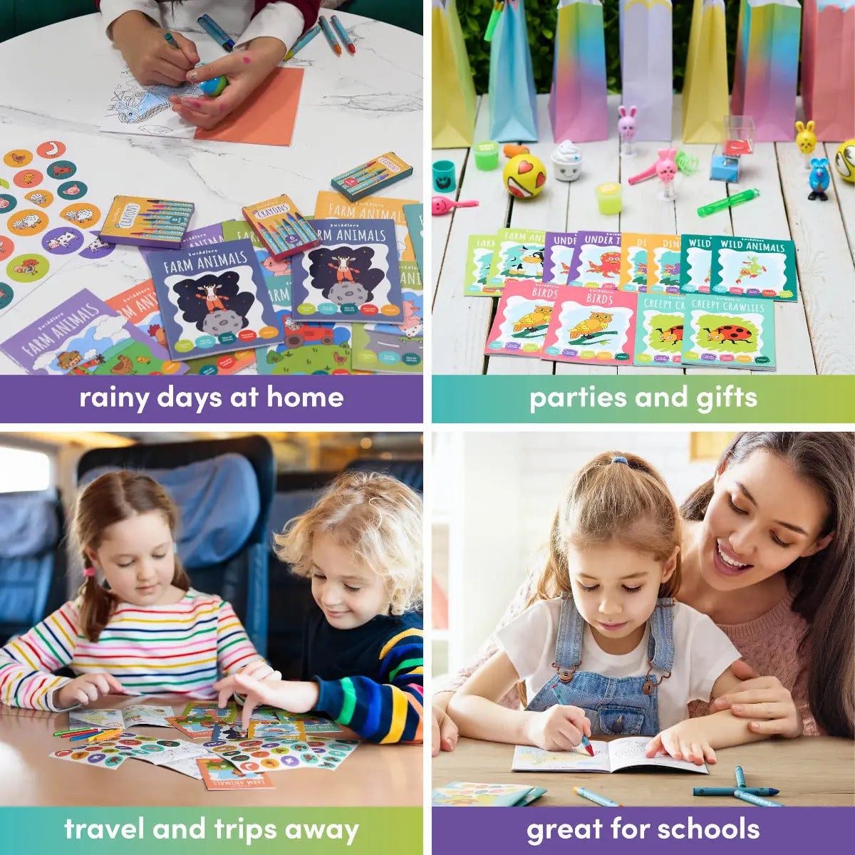 Mit einer handlichen Grösse von 15 x 11 x 5 cm sind die Bücher perfekt für unterwegs. Ob auf Reisen, beim Warten oder als ruhige Beschäftigung zu Hause – sie passen in jede Tasche und kleine Hände. Zudem wirkt das Malen beruhigend und hilft Kindern, sich zu entspannen und den Alltag hinter sich zu lassen.