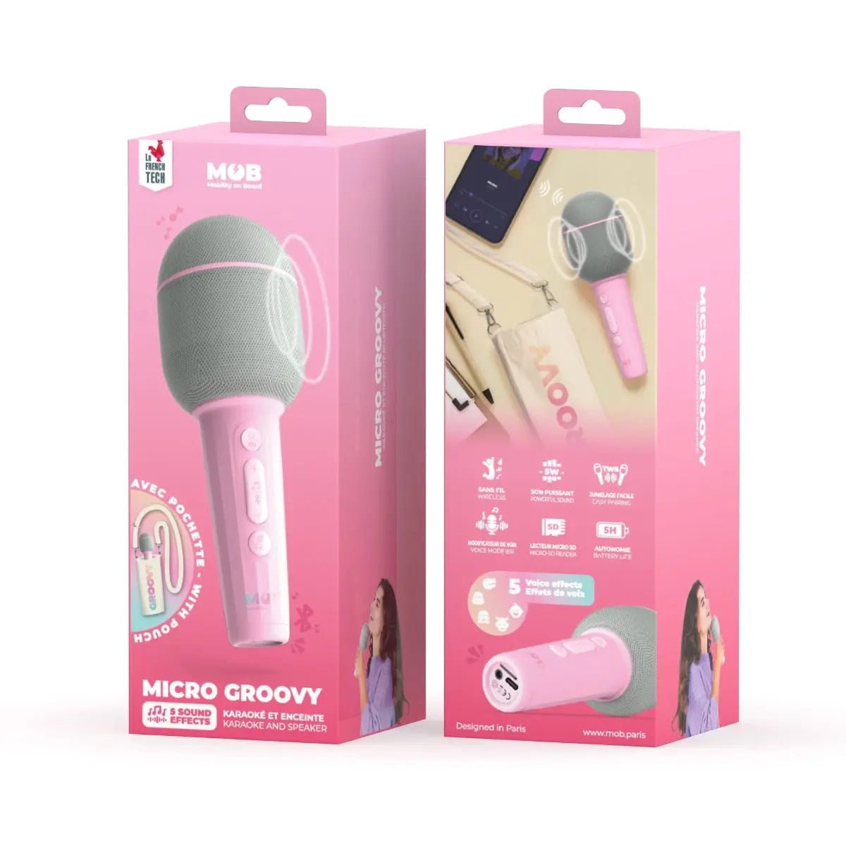 Zeige Deine Gesangs- oder Showkünste mit lustigen Soundeffekten: tiefe oder hohe Stimme, Du hast die Wahl. Mit einem grossen Tonumfang und zahlreichen Stimmeffekten sorgt dieses Mikrofon dafür, dass Du auf der Bühne glänzen kannst. Das Groovy-Mikrofon ist ausserdem mit einem 5-W-Lautsprecher ausgestattet. Streame Deine Lieblingssongs über Bluetooth oder den SD-Kartenleser und singe mit. Für Ihre schönsten Duette verfügt das Mikrofon auch über eine Stereofunktion, so dass Sie zwei gleichzeitig anschliessen können. Mit einer Akkubetriebsdauer von ca. 5 Stunden ist es ideal für lange Abende auf der Bühne! Erhältlich in zwei Farben: dunkelblau und marshmallow. Das Paket enthält ein Mikrofon, eine Anleitung und ein C-Typ-Kabel. Mikrofon kann auch als Bluetooth-Lautsprecher verwendet werden.