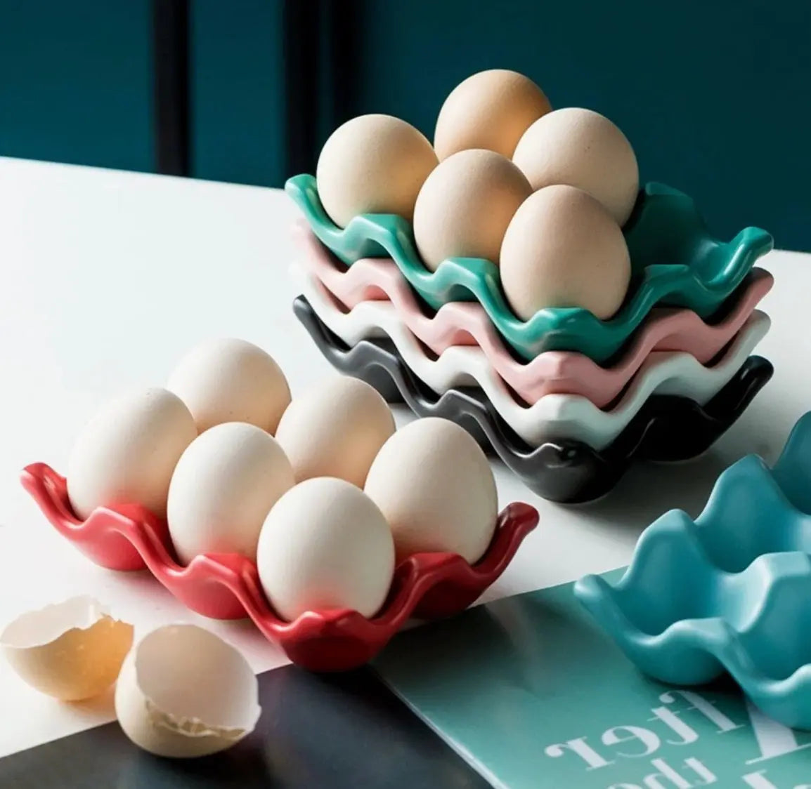 Die robuste Keramikstruktur schützt die Eier vor dem Wegrollen und verleiht dem Halter eine hohe Stabilität. Er ist leicht zu reinigen und spülmaschinenfest, was den täglichen Gebrauch besonders einfach macht. Zudem kann er nicht nur für die Lagerung im Kühlschrank verwendet werden, sondern auch als stilvolles Element beim Backen oder für das Anrichten von Eiern auf dem Frühstückstisch.