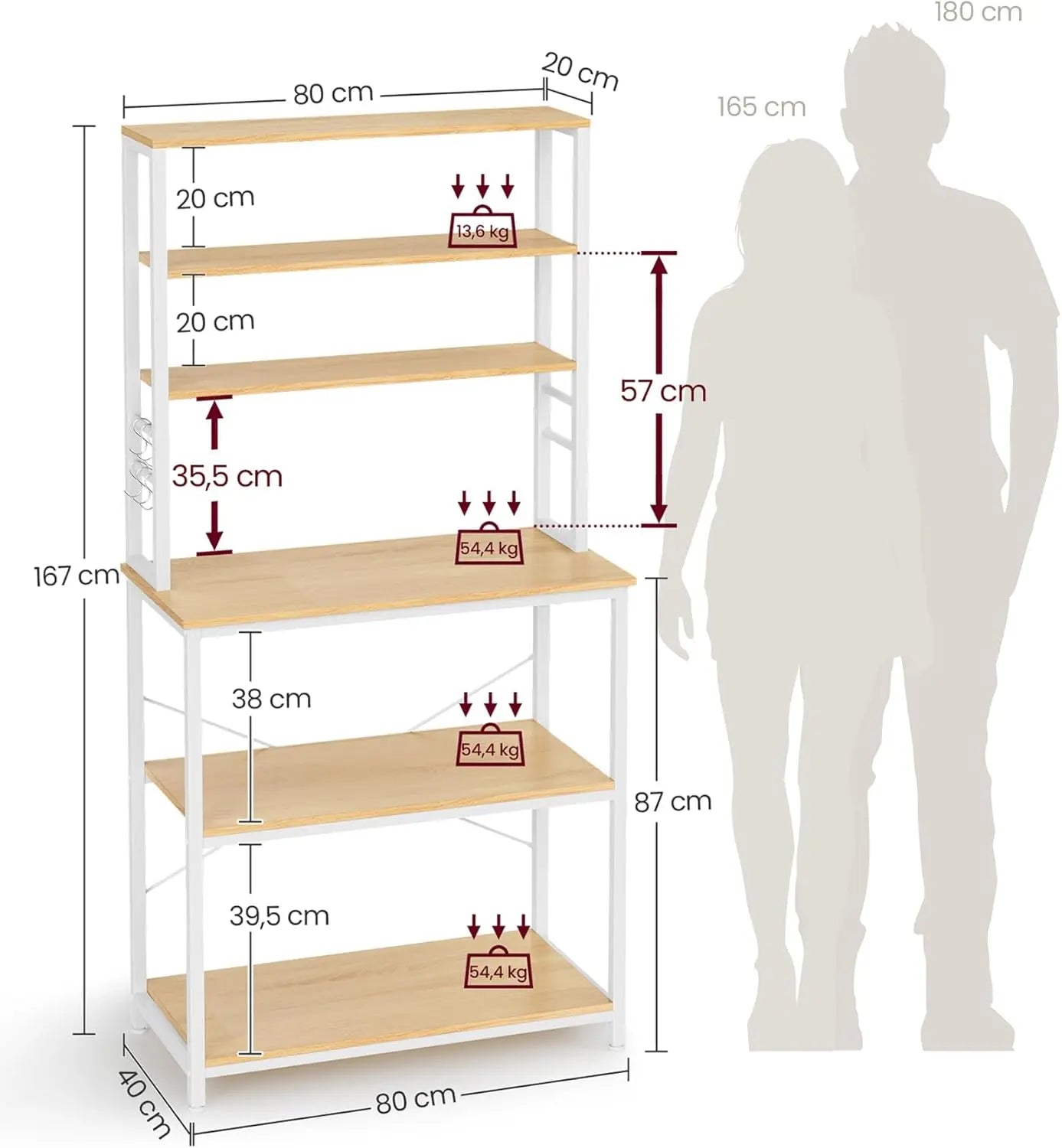 Entfesseln Sie Ihre Kreativität mit dem SONGMICS Küchenregal – der perfekten Lösung für Ihre Küche! Dieses vielseitige Standregal bietet nicht nur Platz für Ihre Mikrowelle und Kaffeemaschine, sondern verwandelt sich auch in eine gemütliche Kaffee- oder Essecke. Mit seinen 6 Ablagen und 6 Haken haben Sie ausreichend Stauraum für all Ihre Küchenutensilien und -schätze.