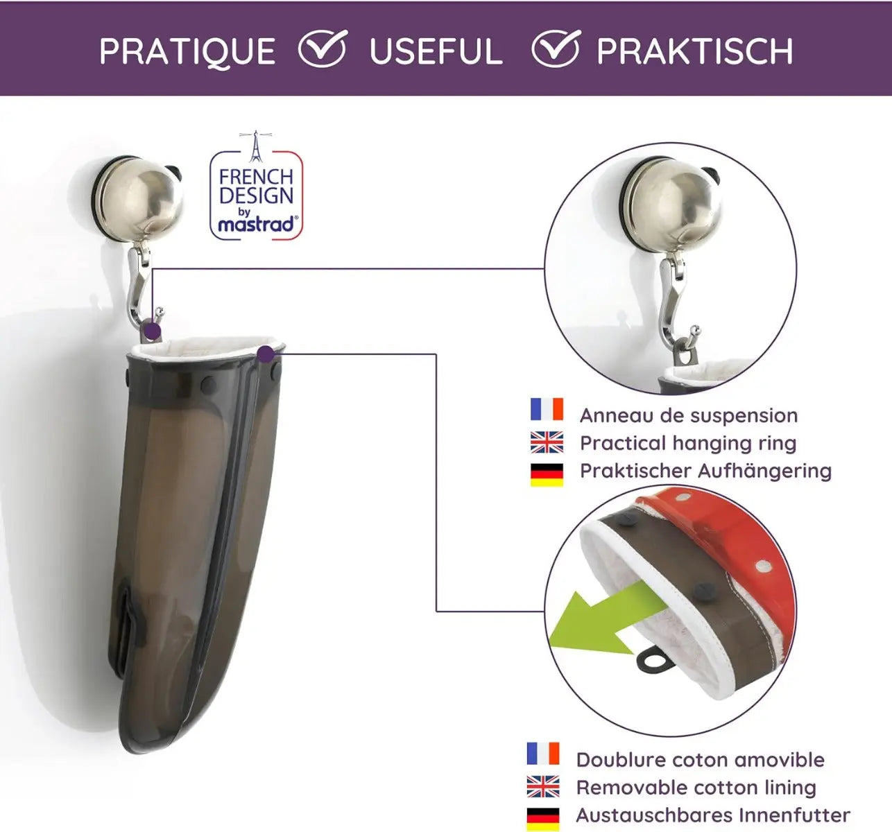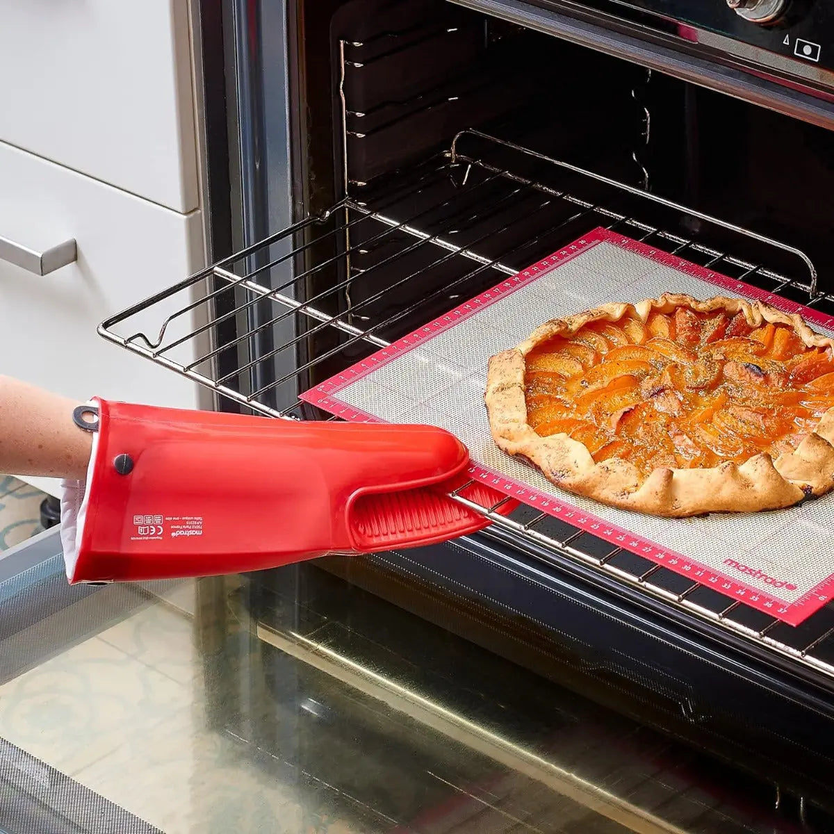 Die enorme Praktikabilität des MASTRAD Gant Orka TEX zeigt sich auch in seiner Ambidexterität, da der Handschuh perfekt an jede Hand passt und beidhändig einsetzbar ist. Zudem erleichtert ein Silikonring die praktische Aufbewahrung des Handschuhs in der Küche.