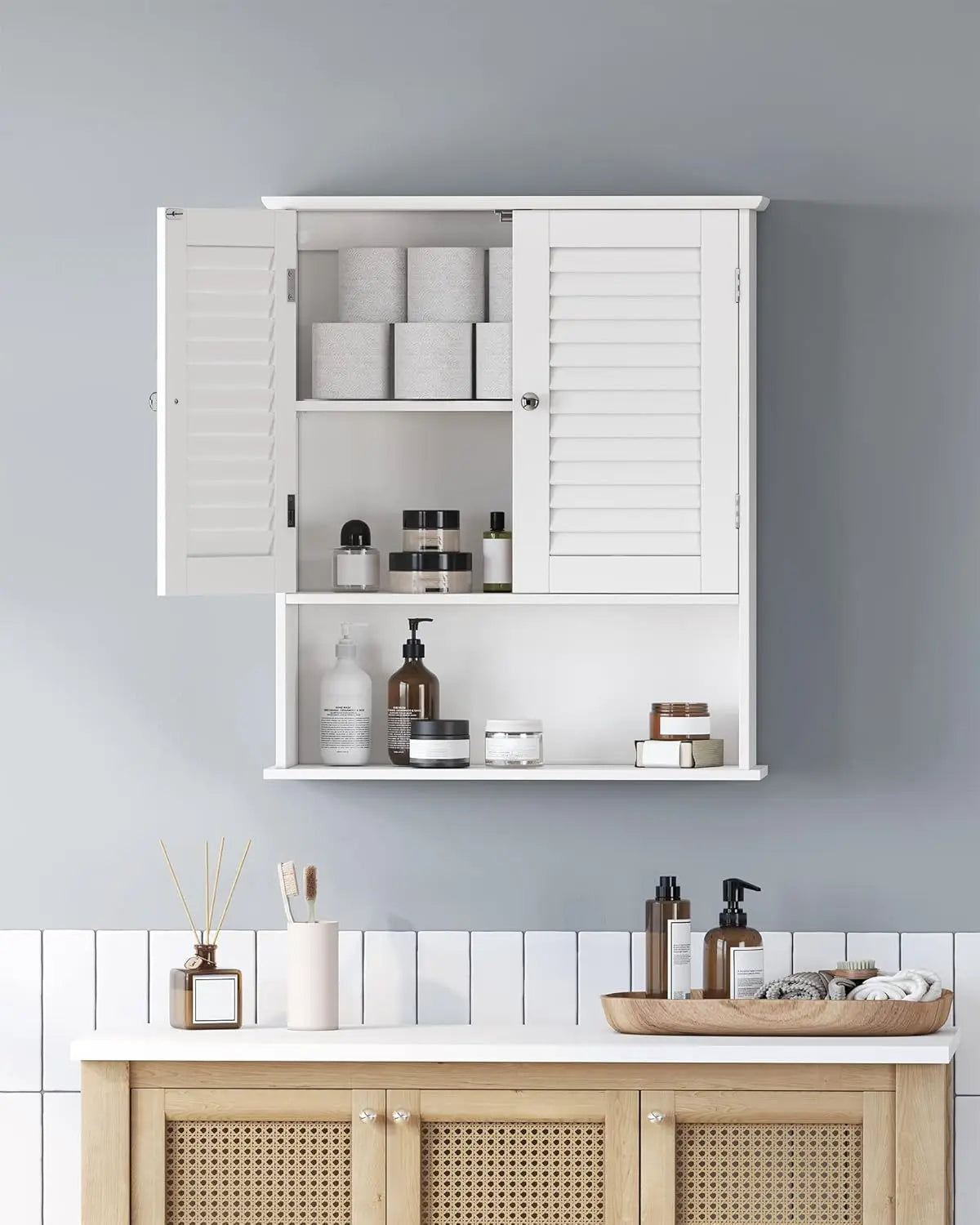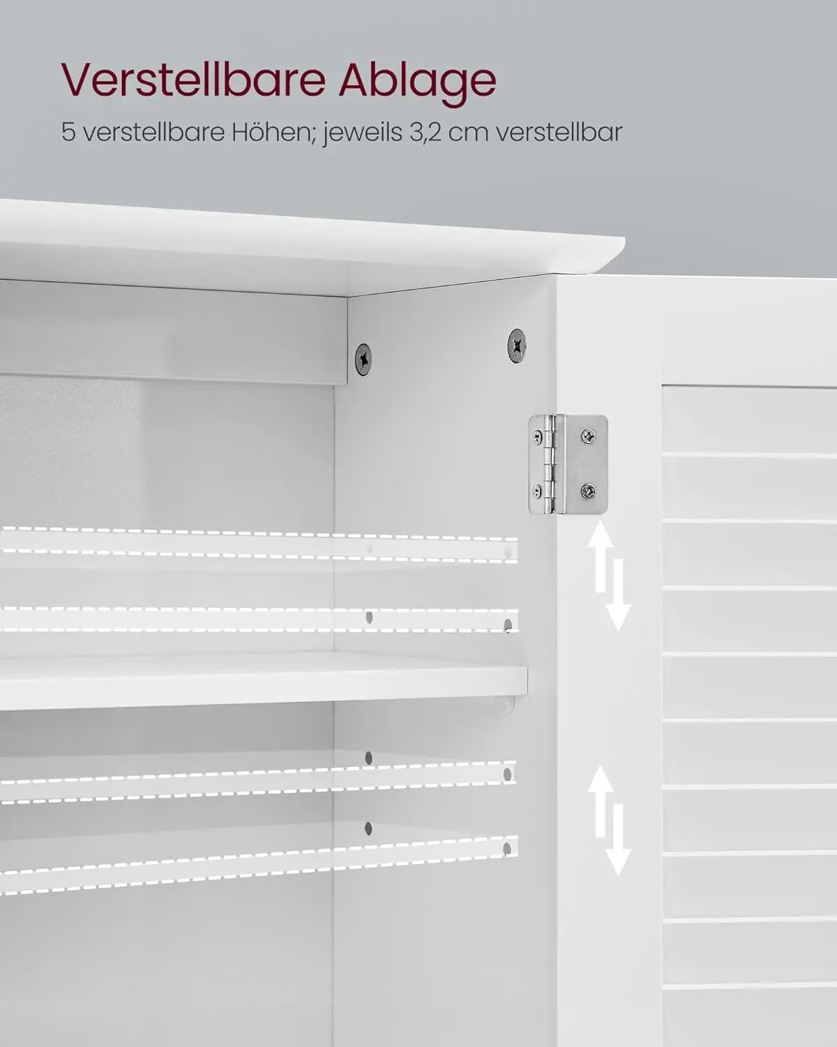 Mit seinem eleganten weissen Finish und den stilvollen Lamellentüren fügt sich der Schrank harmonisch in jede Wohnungseinrichtung ein. Ob im Badezimmer, Wohnzimmer oder Flur – er ist eine schicke Ergänzung für jeden Raum.