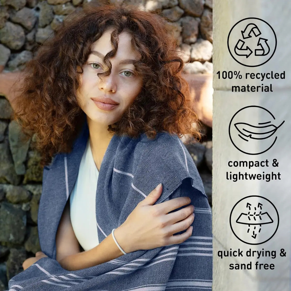 Elegantes Design aus 100% recycelter Baumwolle, Hohe Saugfähigkeit und schnelle Trocknungszeit, Ideal für Strand, Sauna und Yoga
