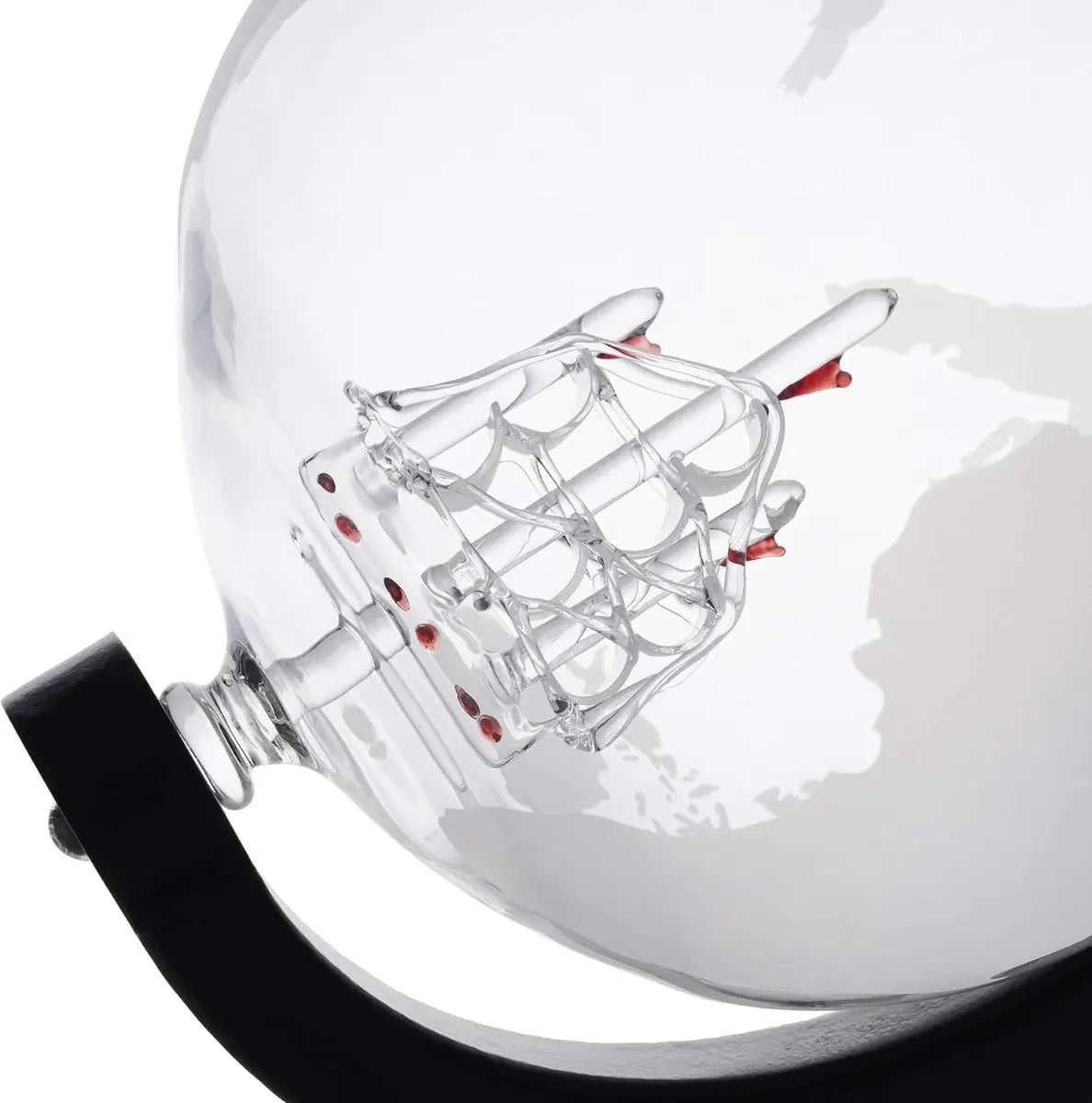 Dieses World Globe Whiskey Dekanter Set mit einem Fassungsvermögen von 1500 ml ist ein elegantes Accessoire für jede Bar. Der Dekanter ist in Form einer Weltkugel gestaltet und kommt mit zwei passenden Gläsern, die ein frosted Map-Motiv tragen. Zusätzlich enthält das Set vier Whiskey-Steine und eine Zange, um Ihre Getränke perfekt gekühlt, aber unverdünnt zu geniessen. Hergestellt aus robustem, klarem Glas, bietet das Set eine Kombination aus Funktionalität und Ästhetik. Es eignet sich hervorragend als Geschenk für Geburtstage, Hochzeiten oder Einweihungsfeiern und fügt sich nahtlos in jede stilvolle Umgebung ein.