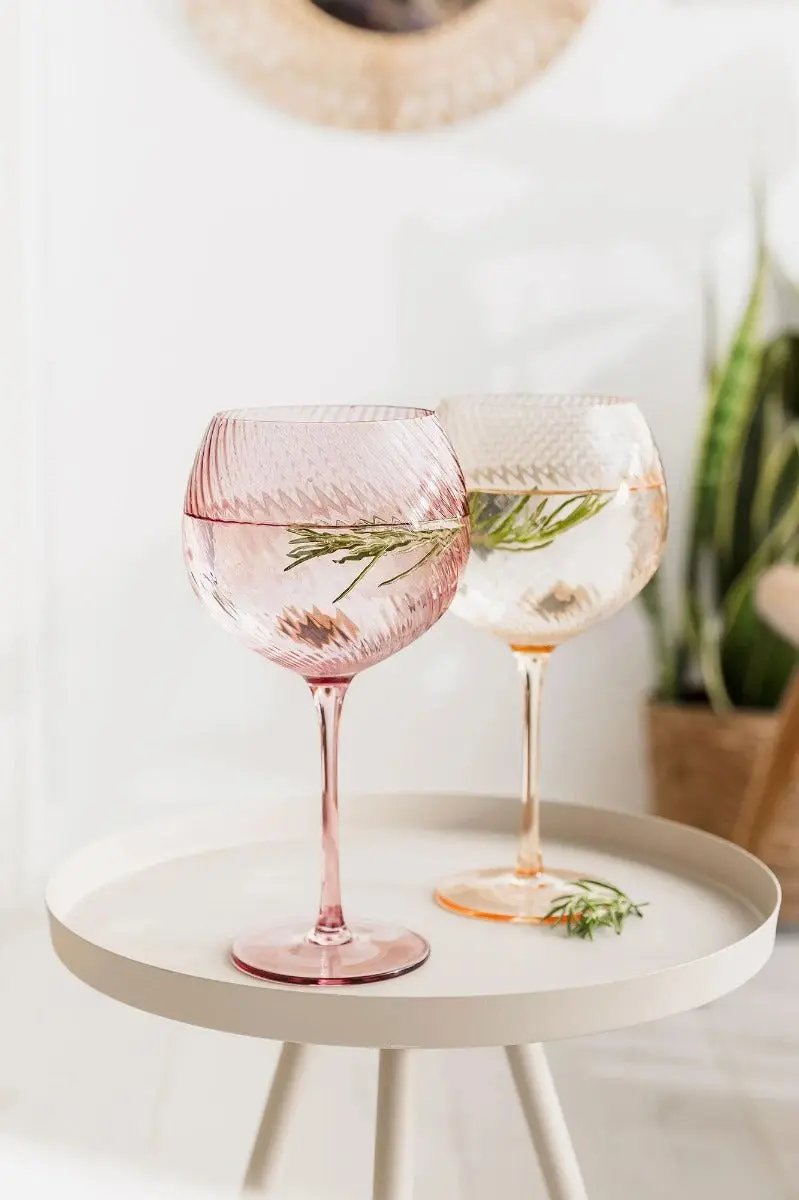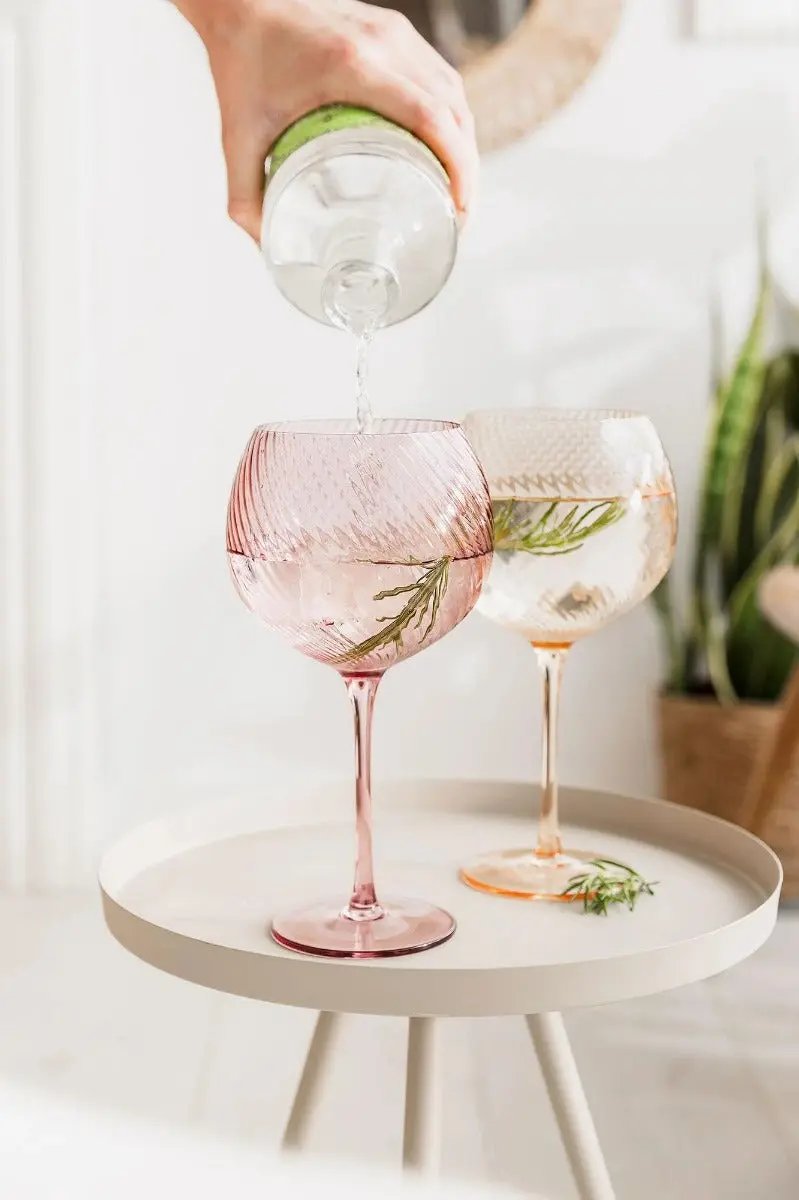 Diese Gingläser Twist in Pink und Peach verwandeln jeden Drink in ein Erlebnis. Mit ihrem voluminösen Kelch, der gedrehten Struktur und der charmanten Farbverläufe sind sie wie gemacht für den stilvollen Gin Tonic am Abend oder den spritzigen Sommer-Cocktail auf der Terrasse. Die zarten Farbtöne in Rosa und Pfirsich sorgen für eine feminine Eleganz, die sich auf jeder Hausbar sehen lassen kann.