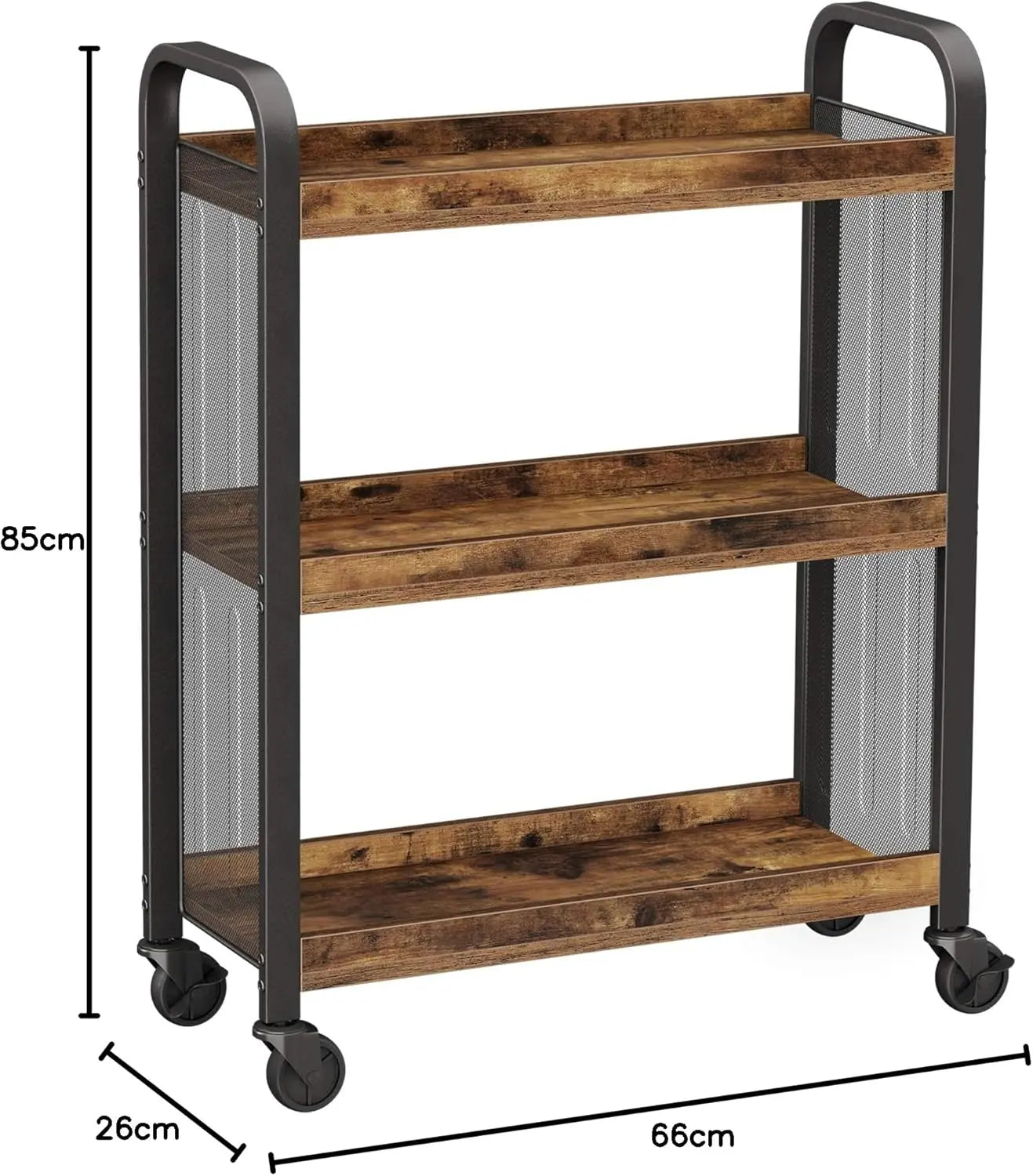 Entdecken Sie den SONGMICS Küchenwagen Rollwagen Servierwagen – Ihren neuen, kompakten Küchenhelfer! Mit seinen platzsparenden Massen von 66 x 26 x 85 cm passt dieser stilvolle Wagen perfekt in jede Küche oder jedes Wohnzimmer, ohne dabei im Weg zu stehen. Die drei praktischen Ablagen bieten Ihnen ausreichend Platz für Ihre Kochutensilien, Zutaten oder sogar für Ihre Lieblingsgetränke.
