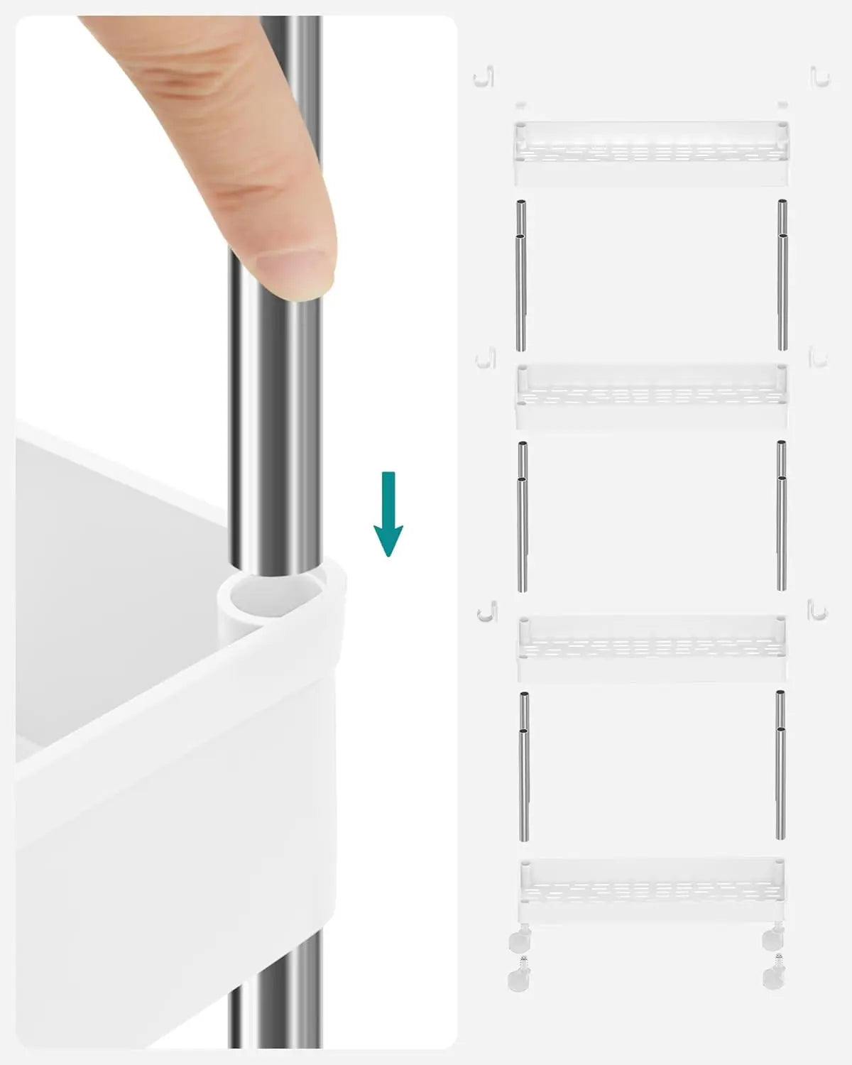 Der SONGMICS Rollwagen vereint Funktionalität und Eleganz und ist die ideale Lösung für kleine Räume, um Ordnung zu schaffen und Ihre Utensilien stets griffbereit zu haben. Profitieren Sie von seinem robusten Design und den flexiblen Einsatzmöglichkeiten für eine stilvolle und praktische Aufbewahrung in Ihrer Küche oder im Badezimmer.