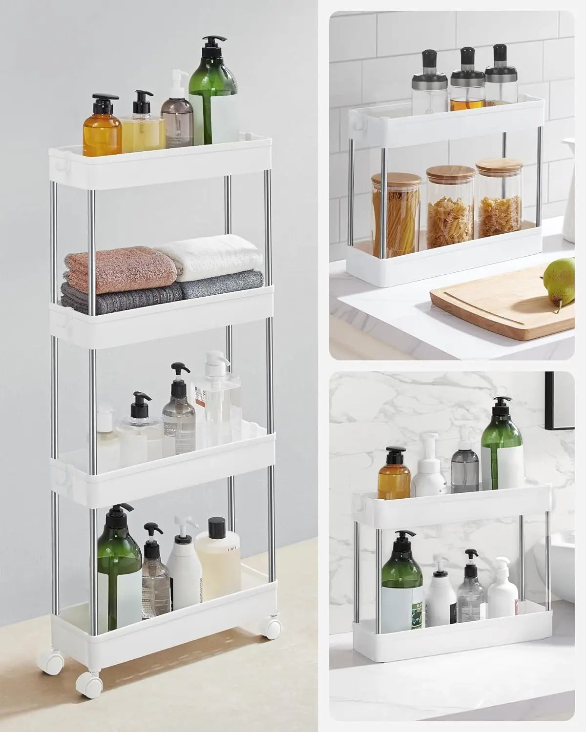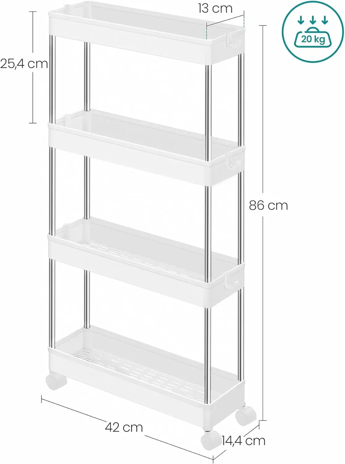 Entdecken Sie den SONGMICS Rollwagen – die perfekte Lösung für alle, die in kleinen Räumen Ordnung schaffen möchten! Mit seinen kompakten Massen von 14,4 x 42 x 86 cm passt dieser elegante Küchenwagen mühelos in enge Nischen in Ihrer Küche, Waschküche oder im Badezimmer.