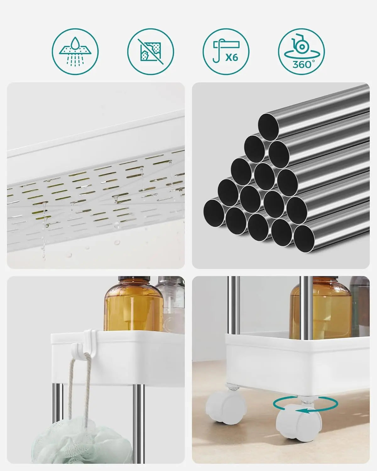 Platzsparende Aufbewahrung für Küche und Bad, Abnehmbare Haken für flexiblen Zugriff, Leichtgängige 360°-Rollen für müheloses Manövrieren