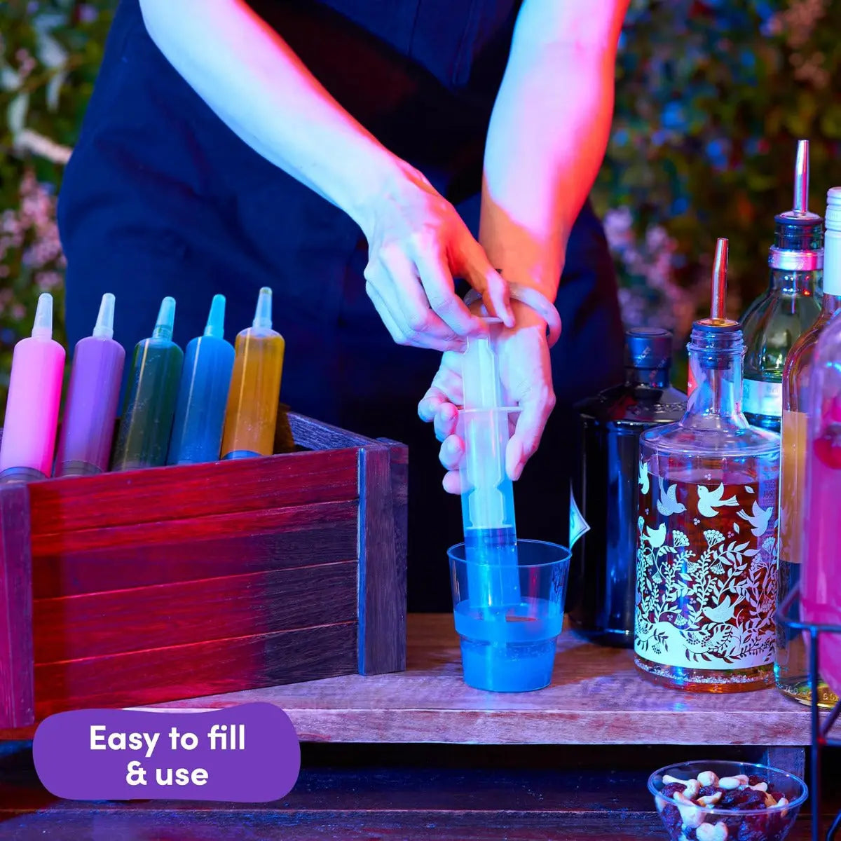 Mach deine Party unvergesslich mit unserem Set aus wiederverwendbaren Doppel-Shot-Spritzen! Diese 60-ml-Spritzen bieten eine kreative und unterhaltsame Möglichkeit, Jelly Shots zu servieren – ideal für jede Feier, besonders für Halloween-Partys. Deine Gäste werden begeistert und überrascht sein von dieser originellen Art, ihre Lieblingsshots zu geniessen. Die Spritzen sorgen nicht nur für Spass und Spannung, sondern sind auch ein toller Gesprächsstarter.