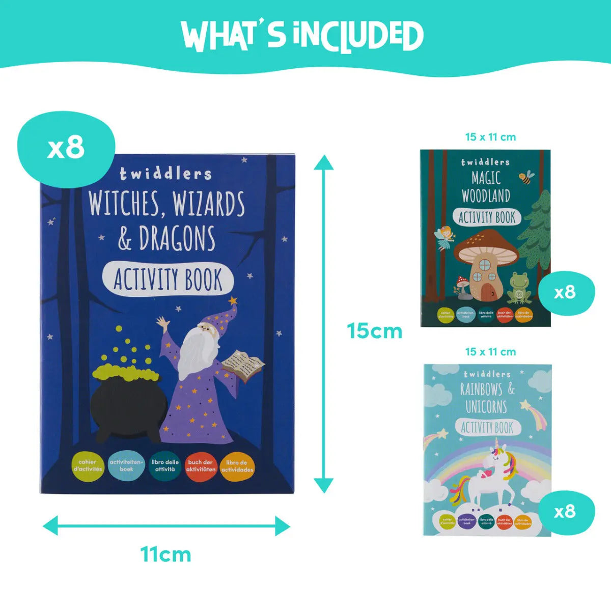 Die Bücher sind robust, handlich und einfach mitzunehmen, sodass sie sich perfekt für unterwegs oder ruhige Nachmittage zu Hause eignen. Ein wunderbares Set für alle kleinen Fantasy-Fans, das für stundenlange kreative Beschäftigung sorgt.