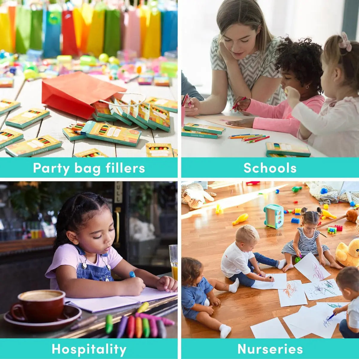 Unsere Buntstifte sind vorgespitzt und fertig verpackt, was eine zeitsparende und praktische Lösung für Lehrer, Eltern und Veranstaltungsplaner bietet. Das erspart zusätzliche Vorbereitungen und ermöglicht es, sich ganz auf das Malen und kreative Gestalten mit den Kindern zu konzentrieren. Ob als Partytüten-Füller, Schulmaterial oder für Bastelprojekte – diese Stifte bieten eine farbenfrohe und vielseitige Möglichkeit, Kinder zum Zeichnen und kreativen Ausdruck zu ermutigen.