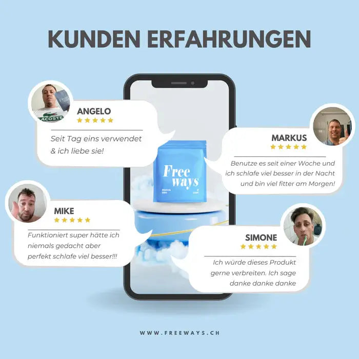 Kunden sind begeistert von den Freeways Mundtapes, da sie effektiv Schnarchen reduzieren und die Schlafqualität deutlich verbessern. Besonders geschätzt wird das hypoallergene, atmungsaktive Material, das sanft zur Haut ist und sicher haftet. Die einfache Anwendung und das diskrete Design machen sie ideal für den nächtlichen Gebrauch. Anwender loben die Förderung der Nasenatmung, die zu einer erholsameren Nachtruhe führt, sowie die Möglichkeit, langfristig gesündere Atemgewohnheiten zu entwickeln.
