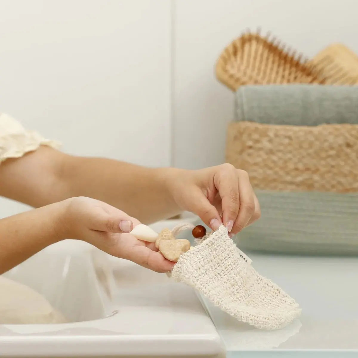 Effektives Aufbrauchen von Seifenresten, Sanfter Peeling-Effekt für die Haut, Einfache Anwendung mit Sisalsäckchen