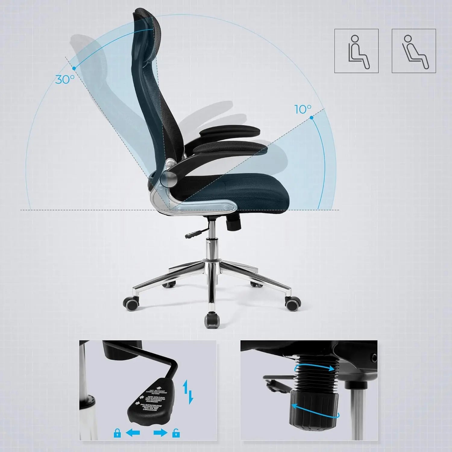 Ergonomisches Design mit verstellbarer Rückenlehne, Klappbare Armlehnen für platzsparendes Verstauen, Höhenverstellbar (45–54,5 cm) mit Wippfunktion