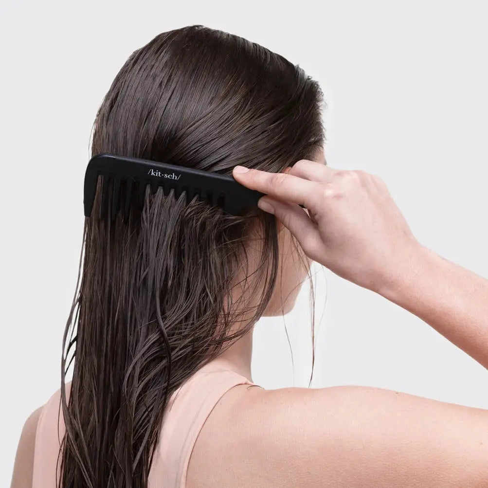 Der Kitsch Kamm mit breiten Zähnen ist das perfekte Haarwerkzeug, um Knoten und Verfilzungen mühelos zu lösen – sanft, schonend und ohne Haarbruch. Ideal für die Anwendung unter der Dusche, verteilt er Conditioner gleichmässig, stimuliert die Kopfhaut und hilft, die Haarstruktur gesund zu erhalten.