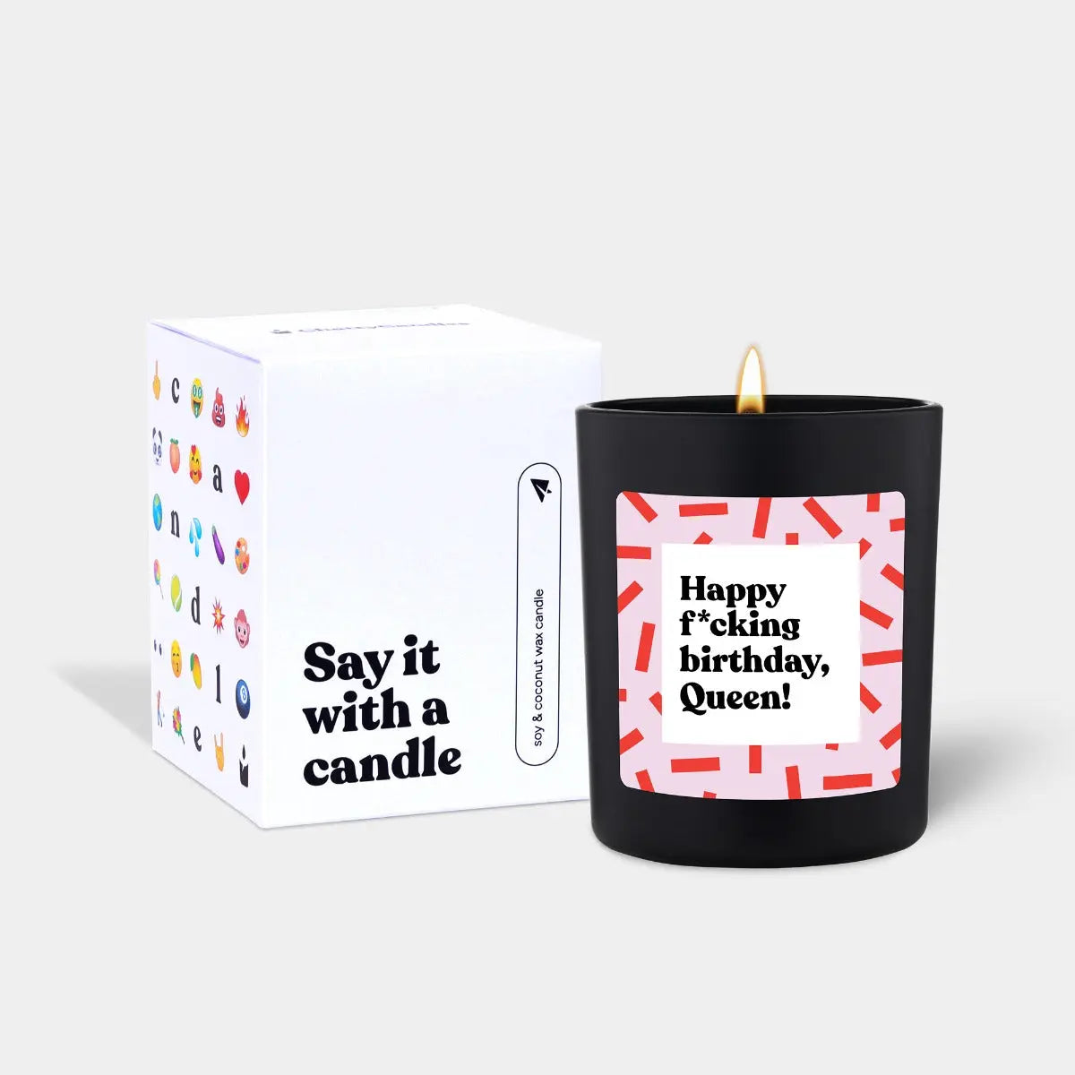 Duftkerze Schwarz Flowery Happy fcking birthday Queen