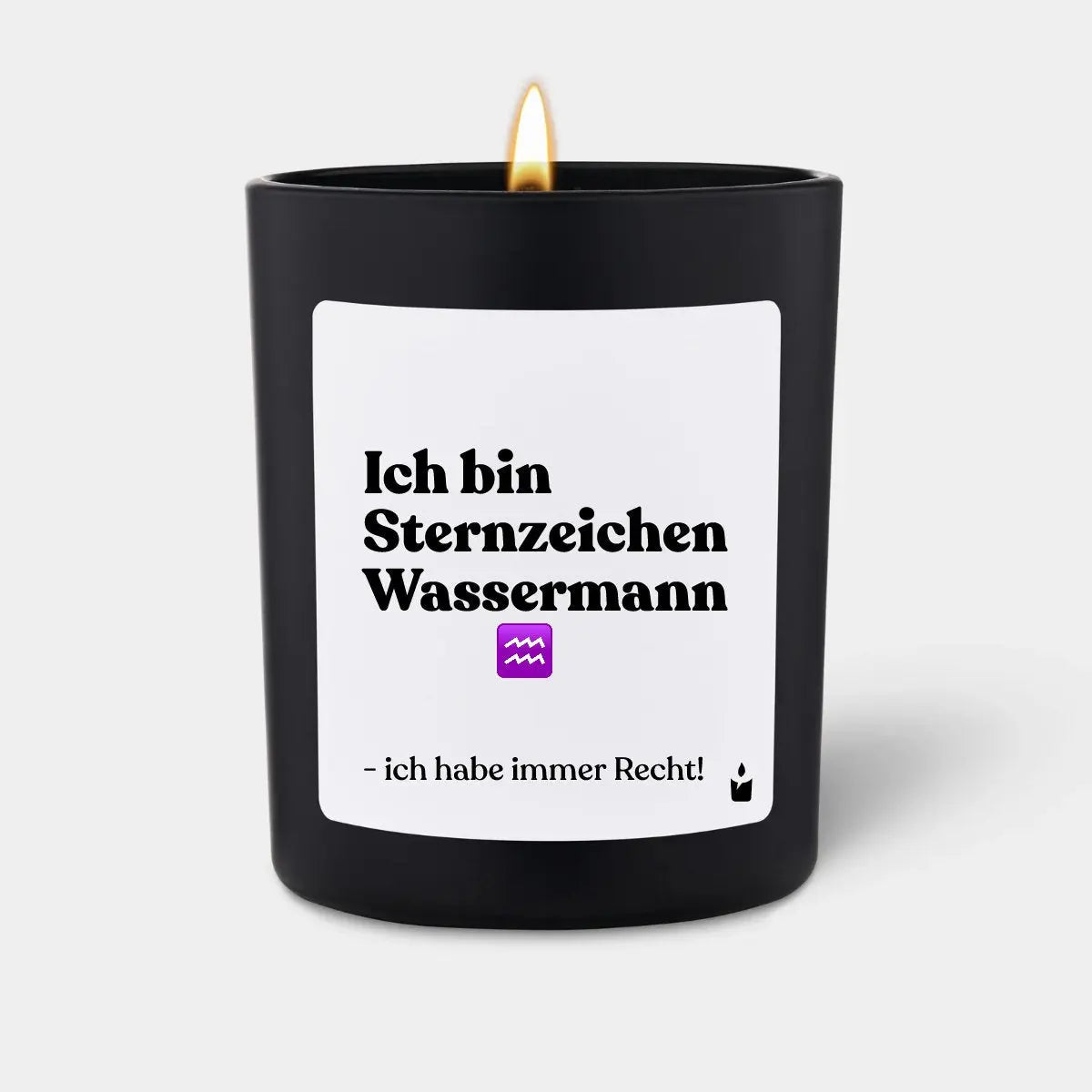 Duftkerze Schwarz Woody Ich bin Sternzeichen Wassermann - ich habe immer Recht!