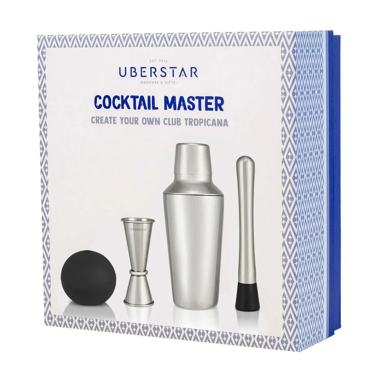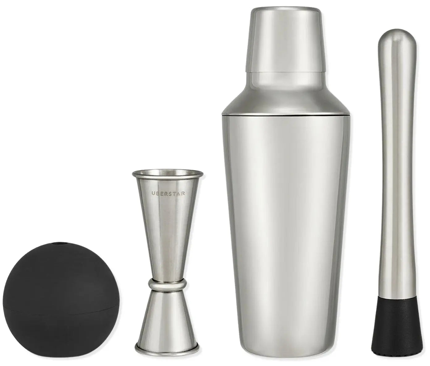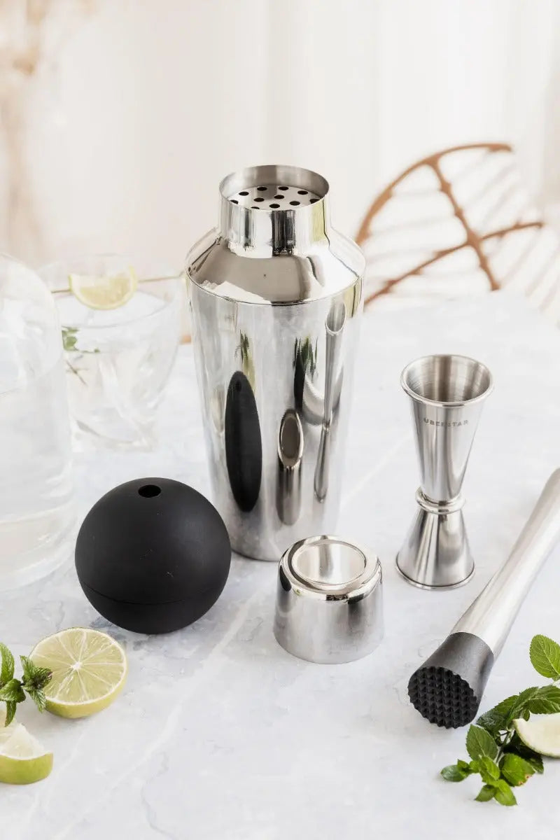 Das Uberstar Cocktail Master Set ist die perfekte Wahl für alle, die ihre Cocktail-Kreationen auf das nächste Level heben möchten. Dieses stilvolle Set enthält alles, was man benötigt, um klassische und innovative Drinks ganz einfach zu Hause zu mixen. Der hochwertige Cocktailshaker aus Edelstahl liegt angenehm in der Hand und sorgt für ein professionelles Mixerlebnis. Ein passender Doppelmessbecher ermöglicht präzises Dosieren von Spirituosen und anderen Zutaten, während der robuste Muddler hilft, Aromen aus frischen Früchten und Kräutern optimal freizusetzen. Abgerundet wird das Set durch eine spezielle Eisball-Form, die grosse, langsam schmelzende Eiskugel kreiert und so das Geschmackserlebnis noch verfeinert.