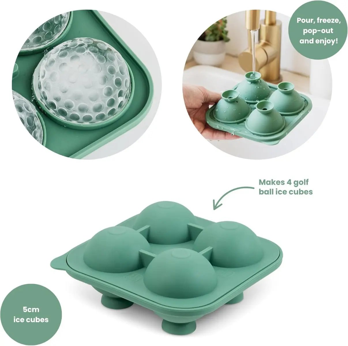 3D-Eiswürfelform für 4 realistische Golfball-Eiswürfel
