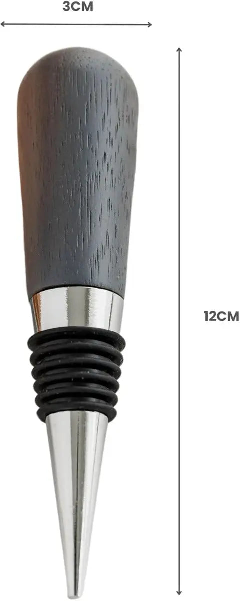 Die obere Kappe besteht aus echtem Akazienholz mit grau gebeizter Oberfläche, wodurch jeder Verschluss eine individuelle, elegante Maserung erhält. Kein Stück gleicht dem anderen – so wird jedes Exemplar zu einem kleinen Designobjekt auf dem Flaschentisch.