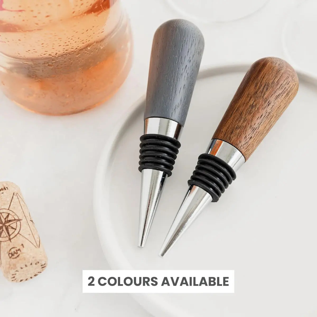 Luftdichter Verschluss für längere Frische, Hochwertiges Akazienholz für individuelles Design, Passend für alle gängigen Weinflaschen.