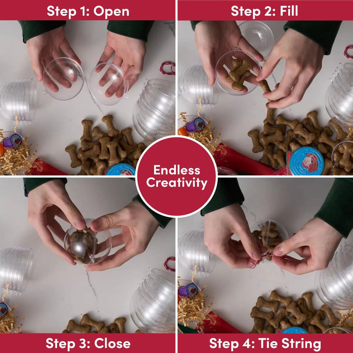 Jede Kugel verfügt über eine praktische Öffnung für müheloses Befüllen und Verschliessen. Dank der Aufhängeschlaufen lassen sie sich leicht an Weihnachtsbäumen, Girlanden oder als Teil festlicher Tischdekorationen anbringen.