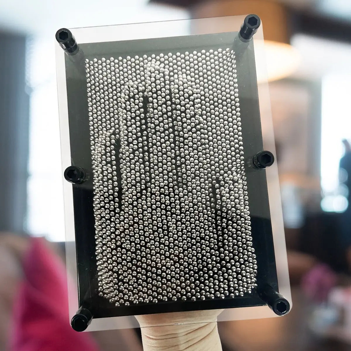 Mit dem Nagelbrett ist das kein Problem! Dieses kleine Wunderwerk der Unterhaltung lässt dich mit nichts weiter als deiner Kreativität und einem Haufen kleiner Metallstifte die coolsten 3D Bilder erschaffen. Einfach Hand, Gesicht oder was dir sonst so einfällt, reindrücken und voilà - dein persönliches Kunstwerk steht! Ob als stilvoller Papierbeschwerer, entspannender Zeitvertreib oder um deinen Freunden zu zeigen, wie dein Gesicht in Metall aussieht - die Nagelplatte ist der perfekte Begleiter für zu Hause und Büro. Und wenn du mal wieder keine Ahnung hast, was du Oma zum Geburtstag schenken sollst - dieses Nagelbrett rettet dich aus der Patsche und sorgt garantiert für Lacher.