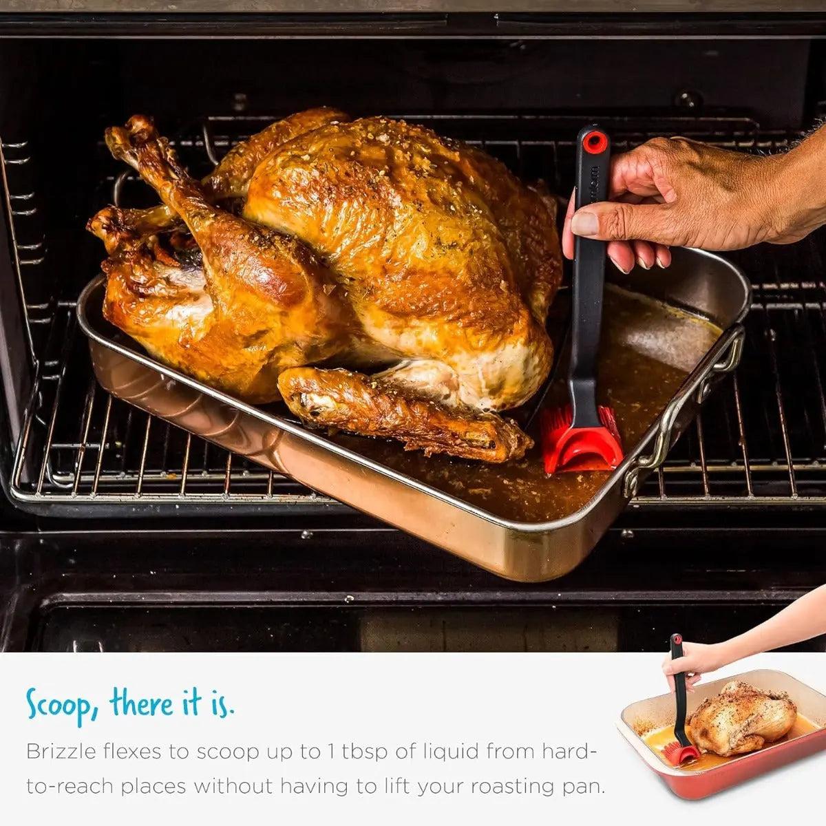 Kunden sind begeistert von der Flexibilität und Benutzerfreundlichkeit des Silikonpinsels Brizzle Rot. Besonders geschätzt werden der biegsame Kopf, der das Erreichen kleiner Räume ermöglicht, sowie die vier Löcher, die eine präzise Flüssigkeitsabgabe gewährleisten. Die hitzebeständigen Silikonborsten und der gewichtete Griff, der Hygiene fördert, sind ebenfalls Highlights. Viele Nutzer loben die einfache Reinigung in der Spülmaschine und die Vielseitigkeit beim Grillen, Backen und Kochen, was den Brizzle zu einem unverzichtbaren Küchenhelfer macht.