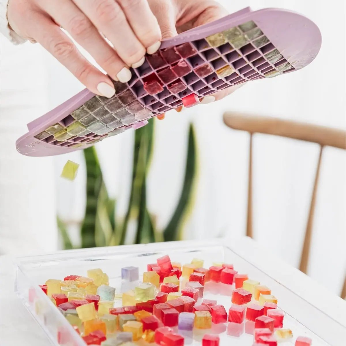 Die Formen bestehen aus hochwertigem, lebensmittelechtem Silikon, lassen sich leicht befüllen und noch leichter entformen. Dank ihrer Flexibilität landen die Miniwürfel fast wie von selbst im Glas – und das Beste: Sie sind spülmaschinenfest und somit absolut alltagstauglich.