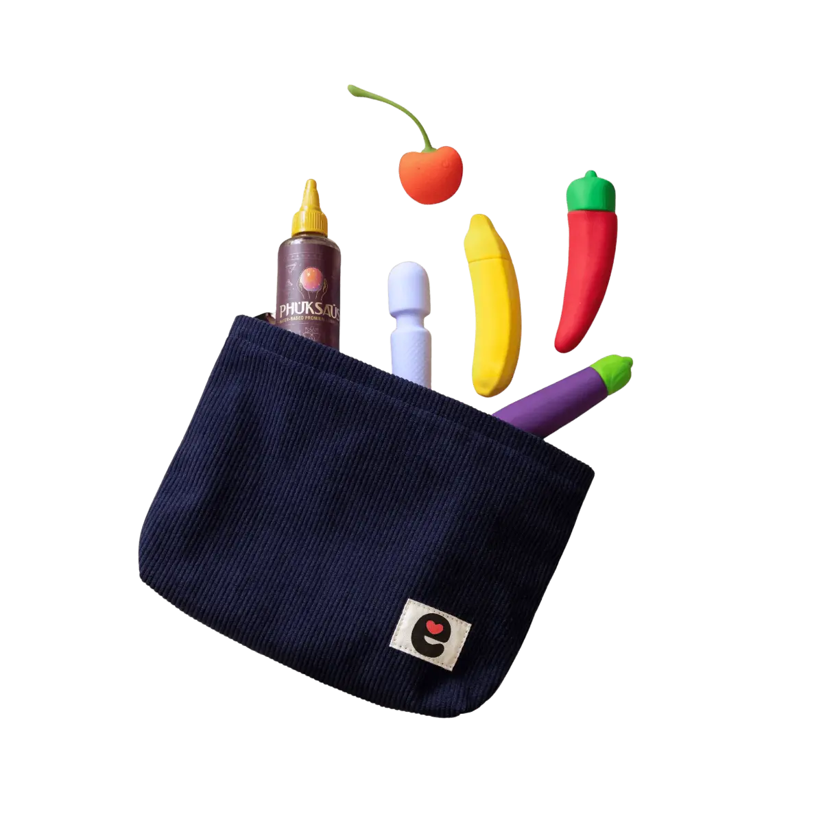 Mit dem stylischen und kompakten mitternachtsblauen Cord-Reiseetui kannst du deine intimen Utensilien organisiert und diskret aufbewahren. Das Etui ist für eine Reihe von Produkten geeignet und eignet sich perfekt für alle, die ihre Emojibator-Toys unterwegs geniessen oder ihre Kosmetika griffbereit halten möchten. Dank des strapazierfähigen Materials und der praktischen Grösse können Sie Ihre persönlichen Utensilien sicher und leicht zugänglich aufbewahren, egal ob Sie auf Reisen sind oder sie einfach zu Hause verstauen möchten. Packen Sie also Ihre Koffer und machen Sie sich auf den Weg, denn Sie wissen, dass Ihre wichtigsten Dinge immer in Reichweite sind.