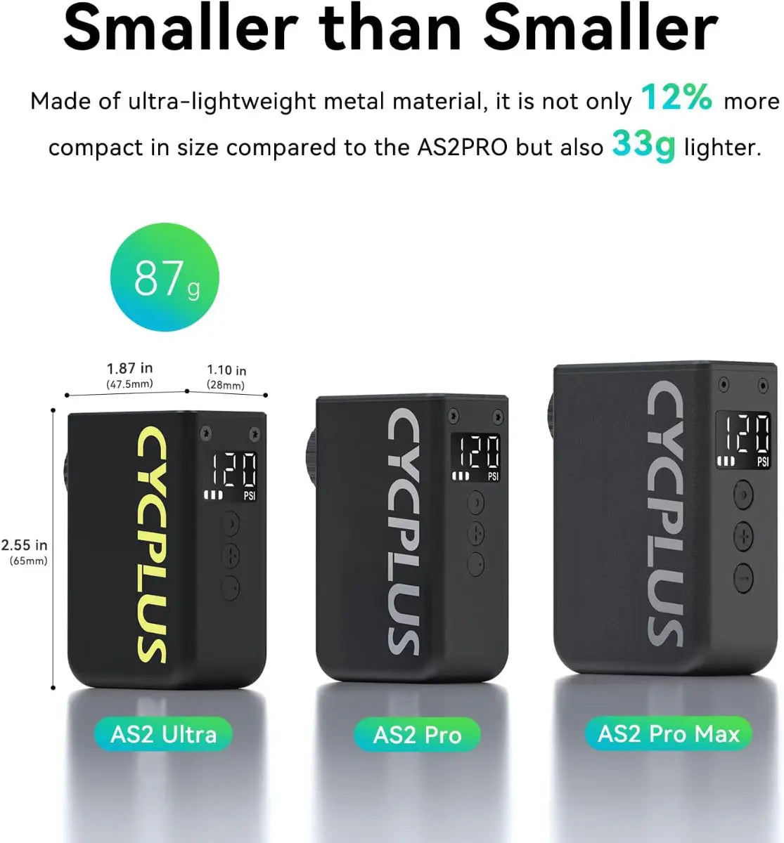 Die CYCPLUS Fahrradpumpe AS2Ultra ist die leichteste und kompakteste elektrische Minipumpe der AS2-Serie – mit 120 PSI Maximaldruck, digitalem Manometer und automatischer Abschaltung. Perfekt für E-Bike, Rennrad und unterwegs, in nur 25 Minuten voll aufgeladen.
