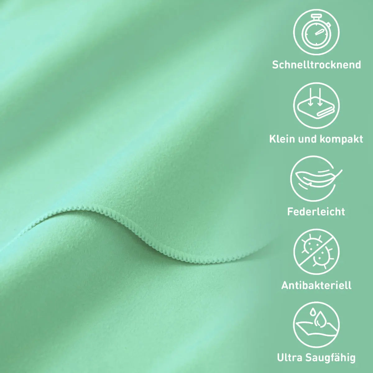 Hochwertige Mikrofaser für optimale Saugfähigkeit, Integrierte Reissverschlusstasche für sichere Aufbewahrung, Kompakt und leicht für einfachen Transport