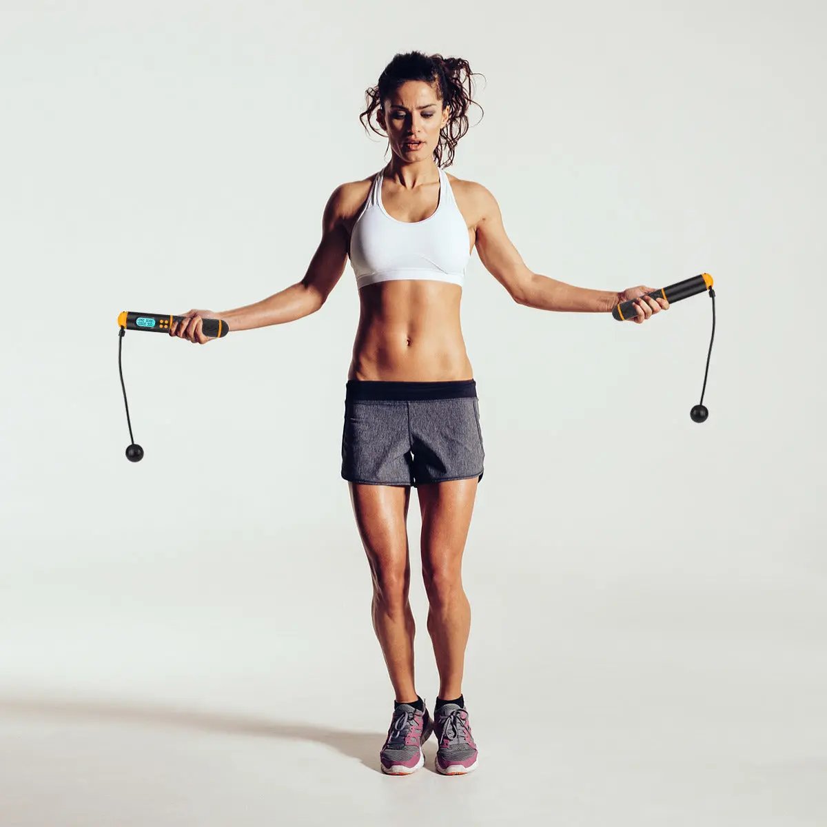 Besonders praktisch: Du kannst zwischen dem klassischen Seilspringen und dem kabellosen Modus wechseln – ideal, wenn du wenig Platz hast oder im Büro, Wohnzimmer oder Hotelzimmer trainierst. Die gewichteten Griffe mit rutschfester Anti-Schweiss-Beschichtung sorgen für sicheren Halt, selbst bei intensiven Einheiten.
