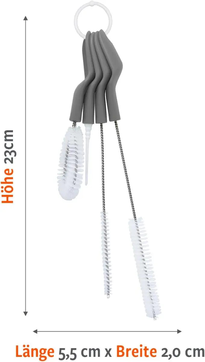 Das Set besteht aus einer langen Trinkhalmbürste, einer kleineren Detailbürste für Deckelöffnungen, einer flexiblen Eckbürste und einer Präzisionsspitze für die feinsten Stellen. Die Griffe sind ergonomisch geformt und bieten eine angenehme Handhabung, während das durchdachte Design eine effiziente Reinigung ohne viel Aufwand ermöglicht. Alle Bürsten sind aus langlebigen, BPA-freien Materialien gefertigt, die für den sicheren Kontakt mit Lebensmitteln geeignet sind.