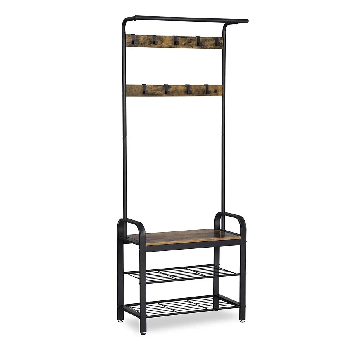 Garderobenständer mit Schuhbank Industrie-Design Vintagebraun-Schwarz