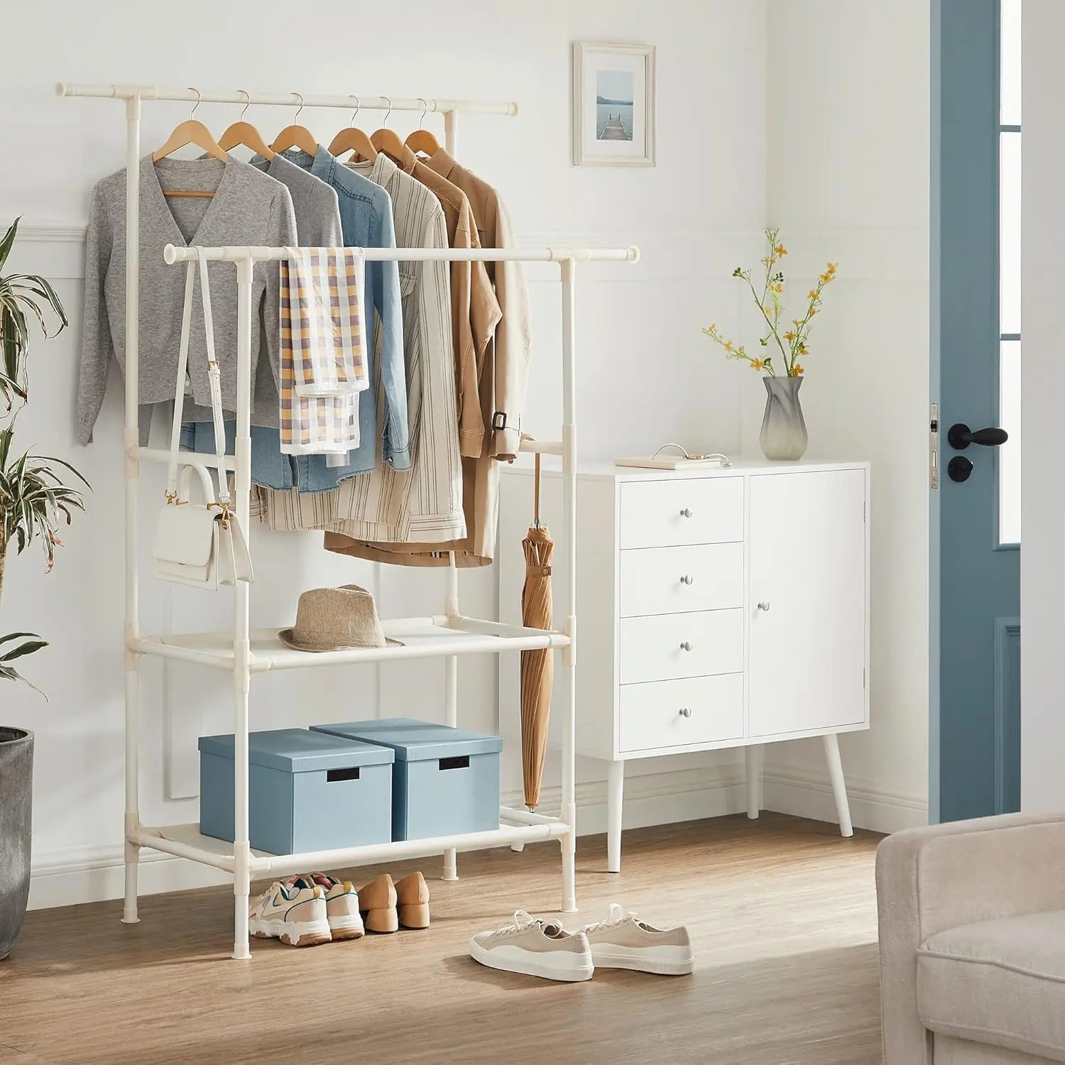 Entdecke den SONGMICS Kleiderständer – die perfekte Lösung für alle, die Ordnung in ihr Zuhause bringen möchten! Mit seinem modernen Design in Weiss fügt sich dieser Garderobenständer nahtlos in jede Einrichtung ein und sorgt dafür, dass deine Kleidung immer an ihrem Platz ist.