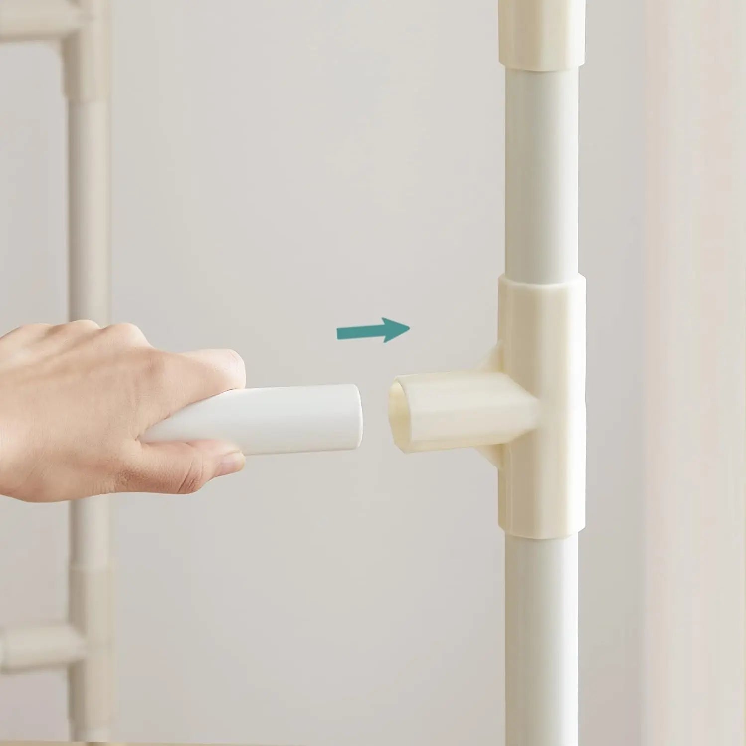 Die Montage? Ein Kinderspiel! Du benötigst kein Werkzeug und kannst den Kleiderständer in kürzester Zeit aufbauen. Mit einem Gewicht von nur 2,8 kg lässt er sich mühelos im Haus bewegen – egal, ob im Schlafzimmer, Ankleidezimmer, Flur oder sogar auf dem Balkon zum Trocknen nasser Kleidung.