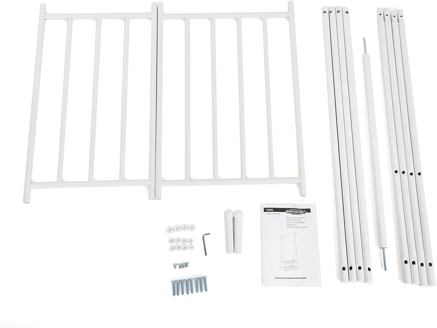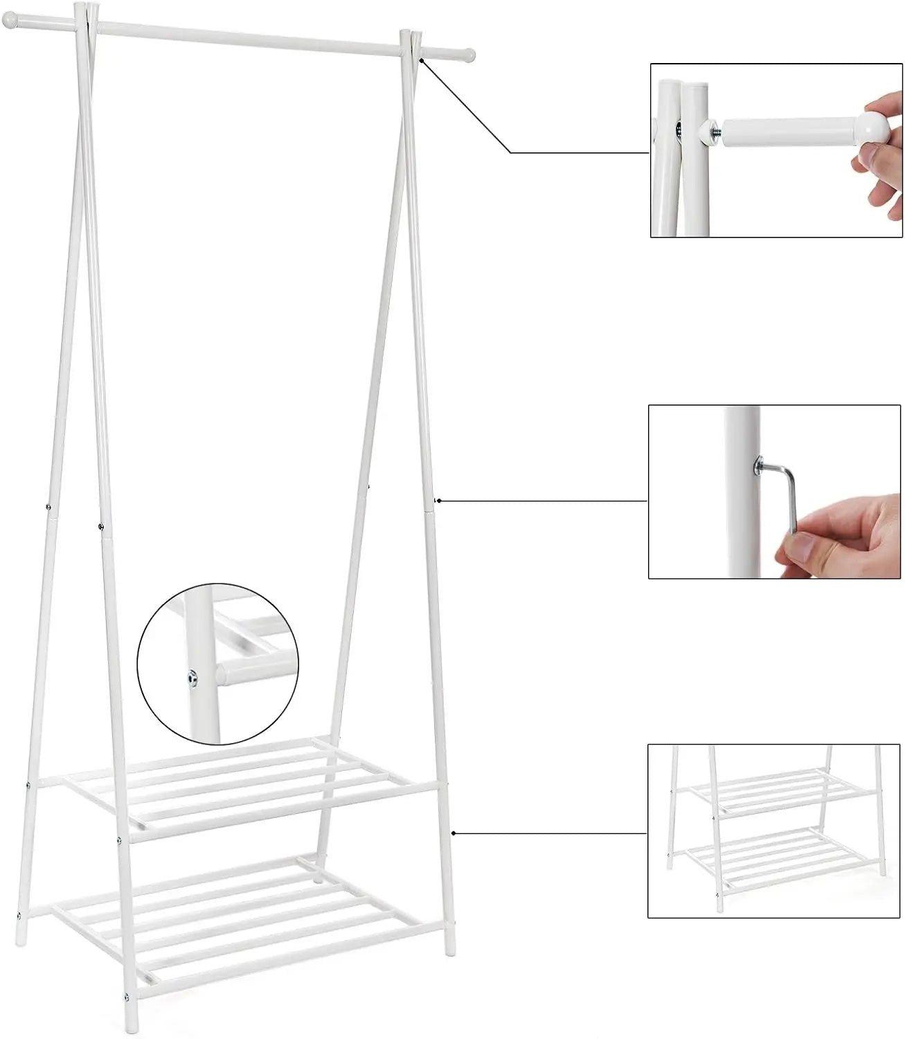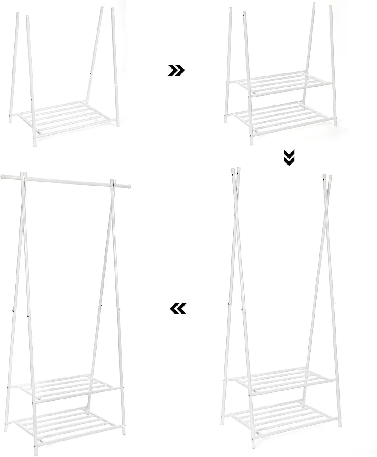 Platzsparende Aufbewahrung für Kleidung, Schuhe und Accessoires, Zwei robuste Regale (je 25 kg) und Kleiderstange (20 kg) für hohe Stabilität, Einfache Montage mit mitgeliefertem Inbusschlüssel und Anleitung