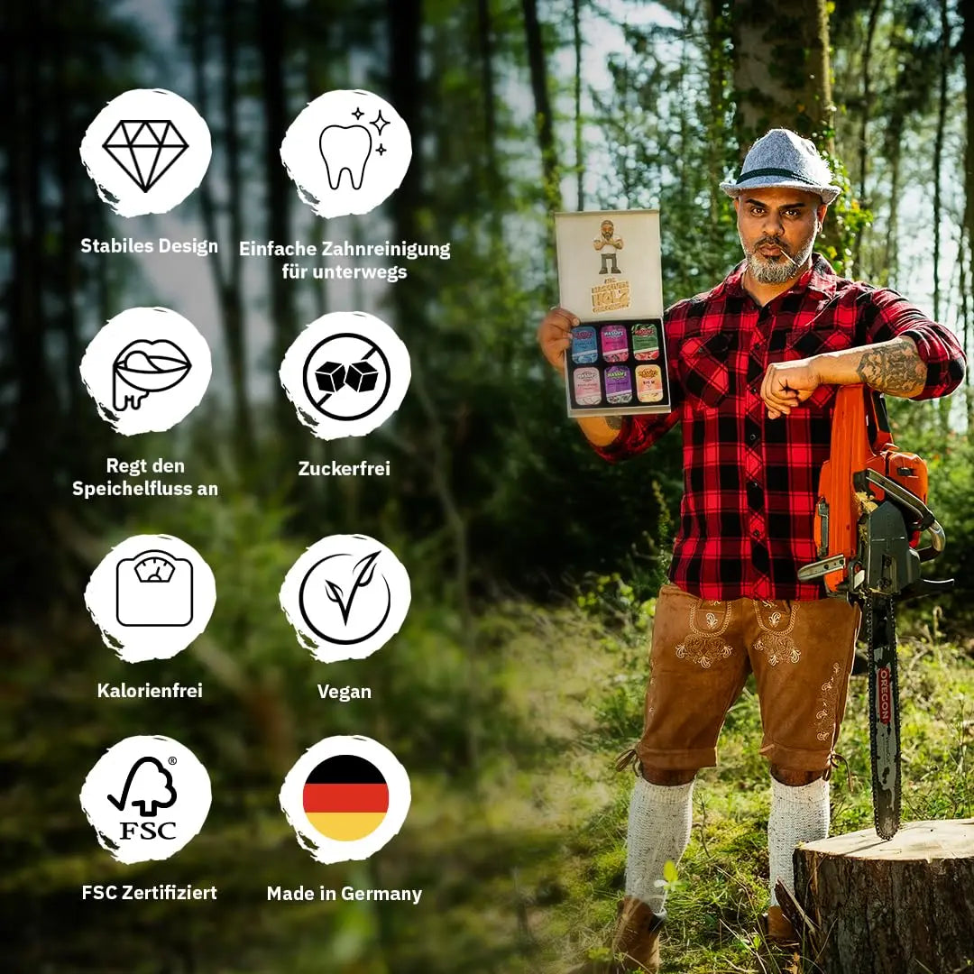 Die aromatisierten Zahnstocher basieren auf hochwertigem Birkenholz und sind mit intensiven, pflanzlichen Aromen verfeinert. Sie sind vegan, zuckerfrei, glutenfrei, nikotinfrei und komplett kalorienfrei – eine einfache und geschmackvolle Alternative zu Kaugummi oder anderen Produkten.
