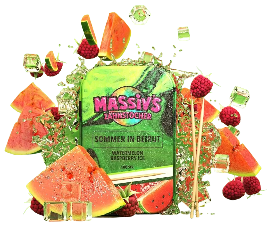 Massiv's Sommer in Beirut Zahnstocher mit Geschmack Watermelon Raspberry Ice in Metalldose