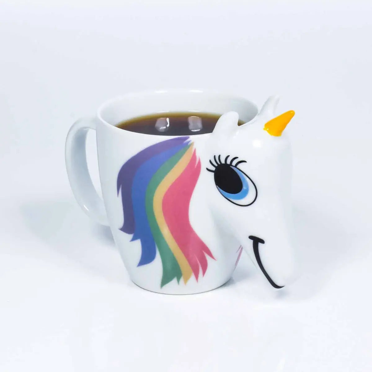 Lass deiner Fantasie freien Lauf… mit dieser wärmeempfindlichen, wie ein Einhorn geformten Tasse mit süßem 3D Gesicht und -Horn. Die Tasse sieht nicht nur hübsch aus, sondern hat zudem einen besonderen Effekt… Füll einfach dein Lieblingsheißgetränk in die Tasse und schaue deinem Einhorn dabei zu, wie es auf magische Art und Weise seine Farbe verändert.