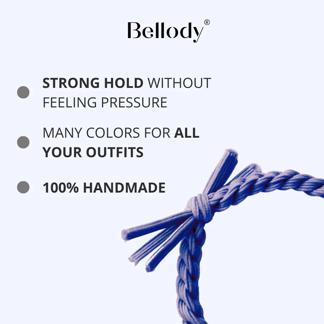 Dank der Verwendung hochwertiger Materialien sind die Bellody Haargummis besonders haarschonend und verhindern Haarbruch sowie unangenehmes Ziepen. Die spezielle Flechtstruktur verhindert, dass sich die Haare verheddern oder brechen, und eignet sich für alle Haartypen – von feinem bis dickem Haar. Gleichzeitig verleihen sie deinem Look eine elegante Note, die sowohl für den Alltag als auch für besondere Anlässe geeignet ist.