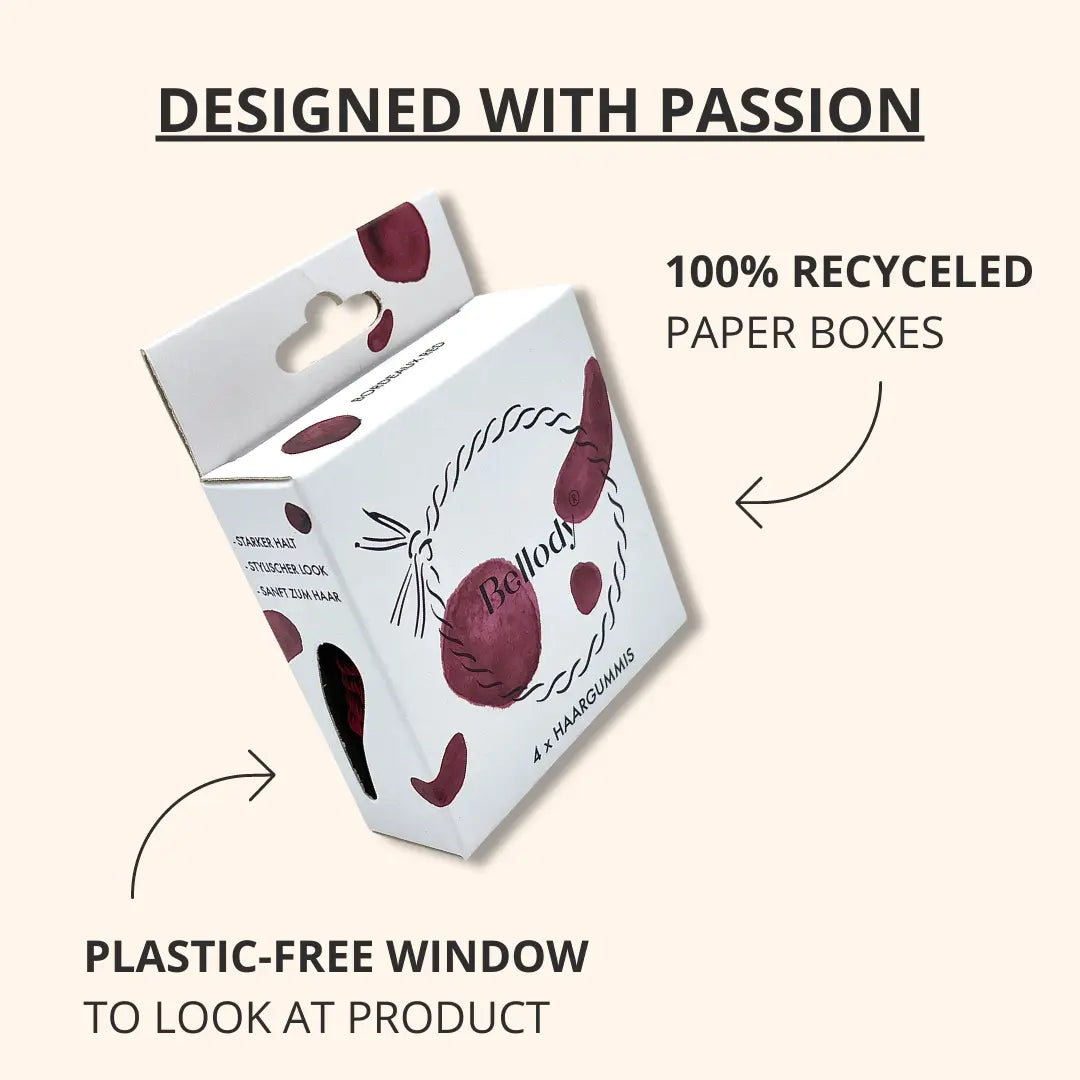 Ein besonderes Highlight ist ihre Vielseitigkeit. Die Haargummis dienen nicht nur als praktische Haaraccessoires, sondern lassen sich auch als modisches Armband tragen, das deinem Outfit einen schlichten, stilvollen Akzent verleiht. Mit einer kompakten Grösse von ca. 0,07 Metern Länge und 0,007 Metern Breite passen sie bequem in jede Tasche. Das Set aus vier Haargummis wird in einer ansprechenden Verpackung aus recyceltem Papier geliefert und eignet sich somit auch perfekt als Geschenk.