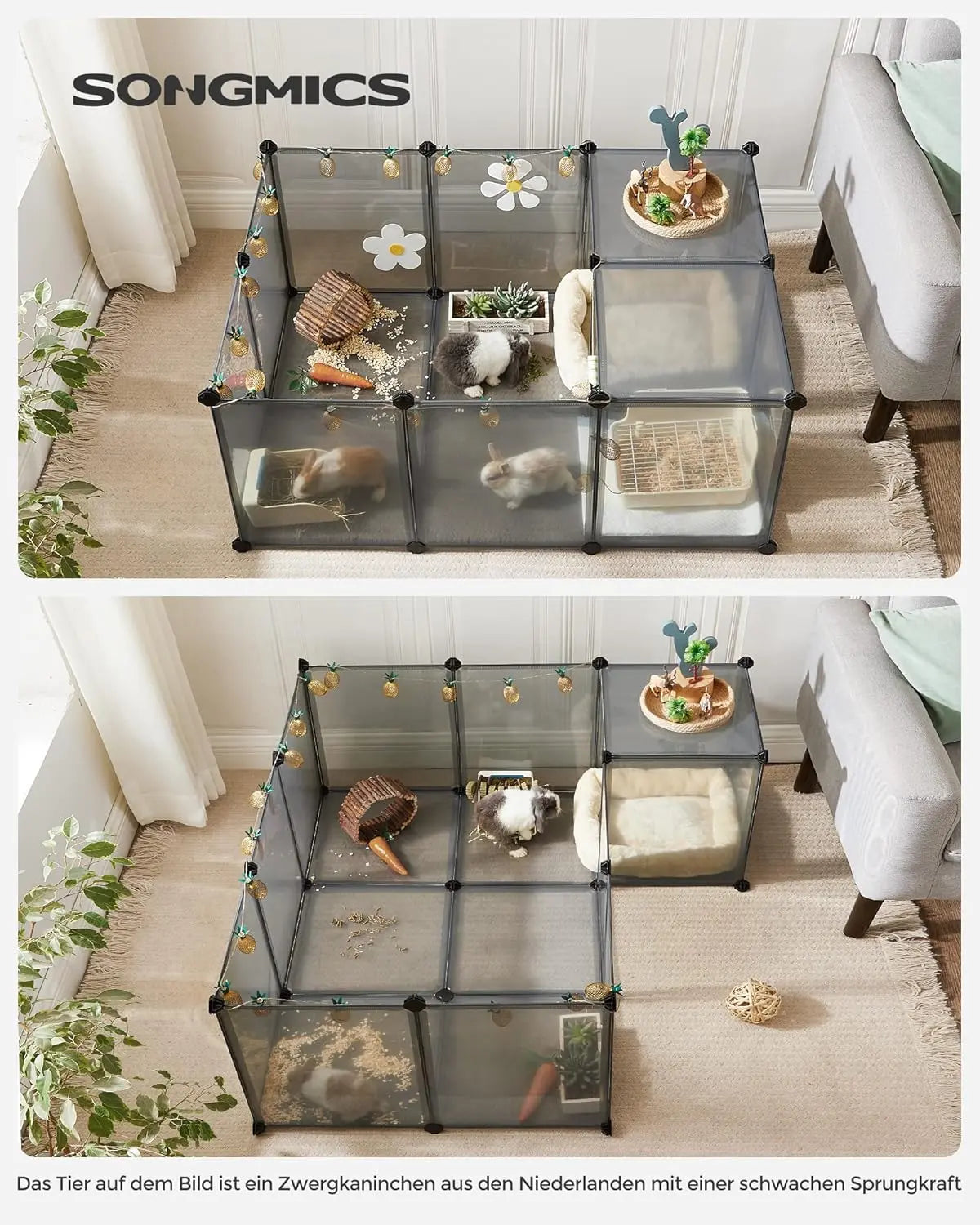 Gönnen Sie Ihren kleinen Haustieren ein sicheres und grosszügiges Zuhause mit dem SONGMICS Freigehege, das sich flexibel anpassen und leicht reinigen lässt. Schaffen Sie einen Ort zum Herumtollen und Spielen, der sowohl Ihnen als auch Ihren pelzigen Freunden Freude bereitet.