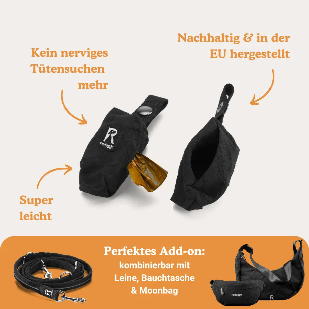 Wie alle Redoggo-Produkte wurde auch dieser Spender mit Expert:innen aus Tiermedizin und Hundetraining entwickelt und in einem deutschen Labor geprüft. Hergestellt wird er aus recycelten Autoteilen – konkret: aus Airbags und Sicherheitsgurten. Das macht ihn nicht nur besonders widerstandsfähig, sondern auch wasserabweisend und langlebig. Fair produziert in Rumänien (EU) und komplett plastikfrei verpackt – für ein gutes Gefühl bei jedem Spaziergang.