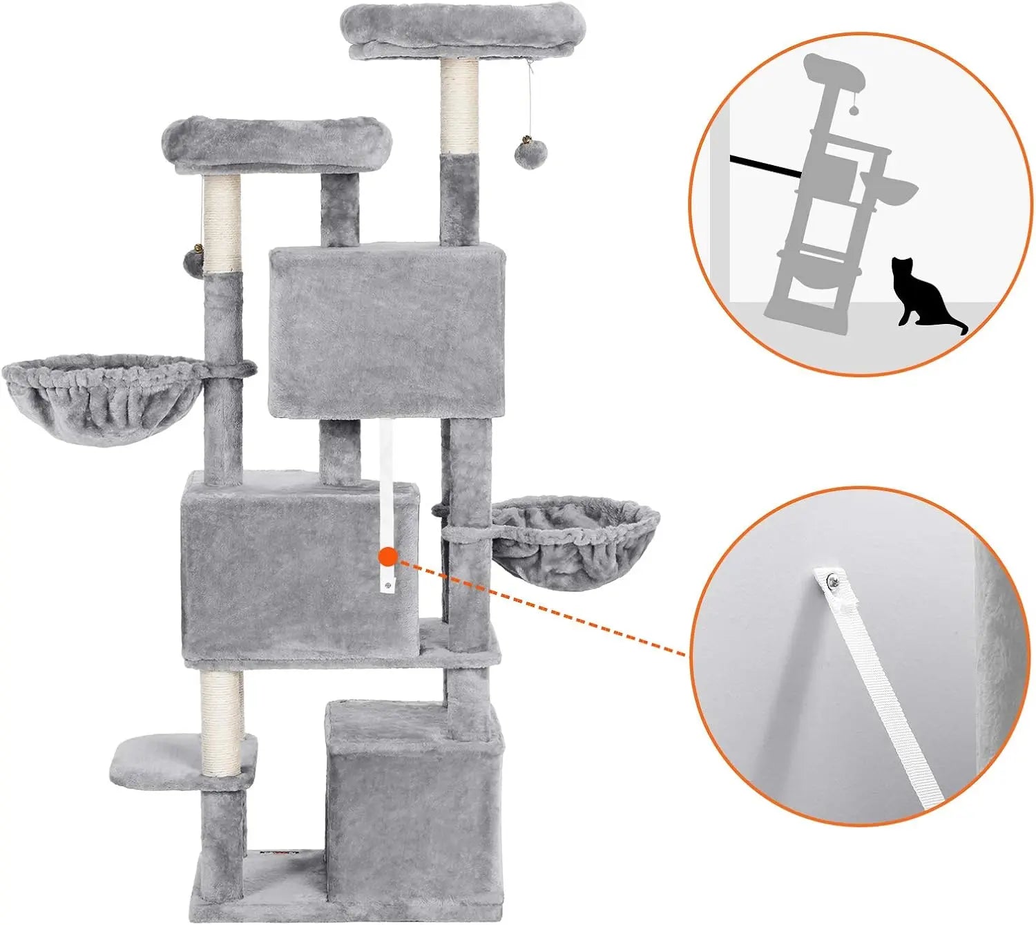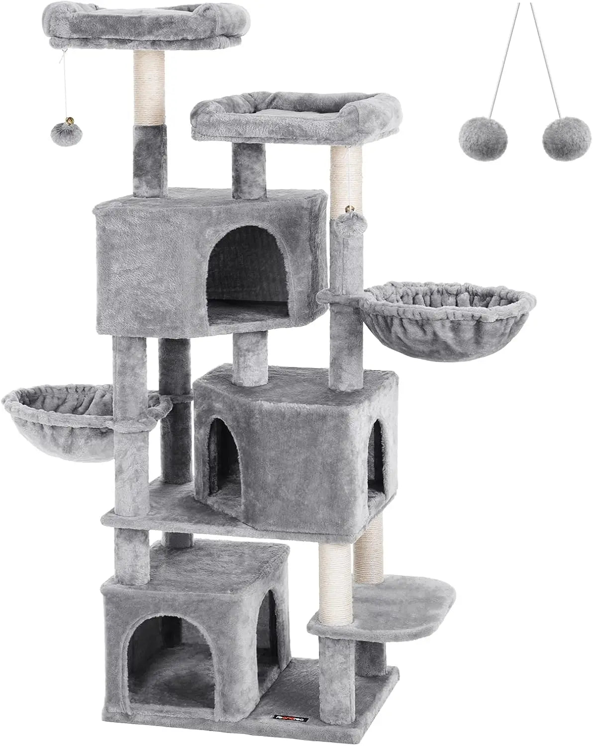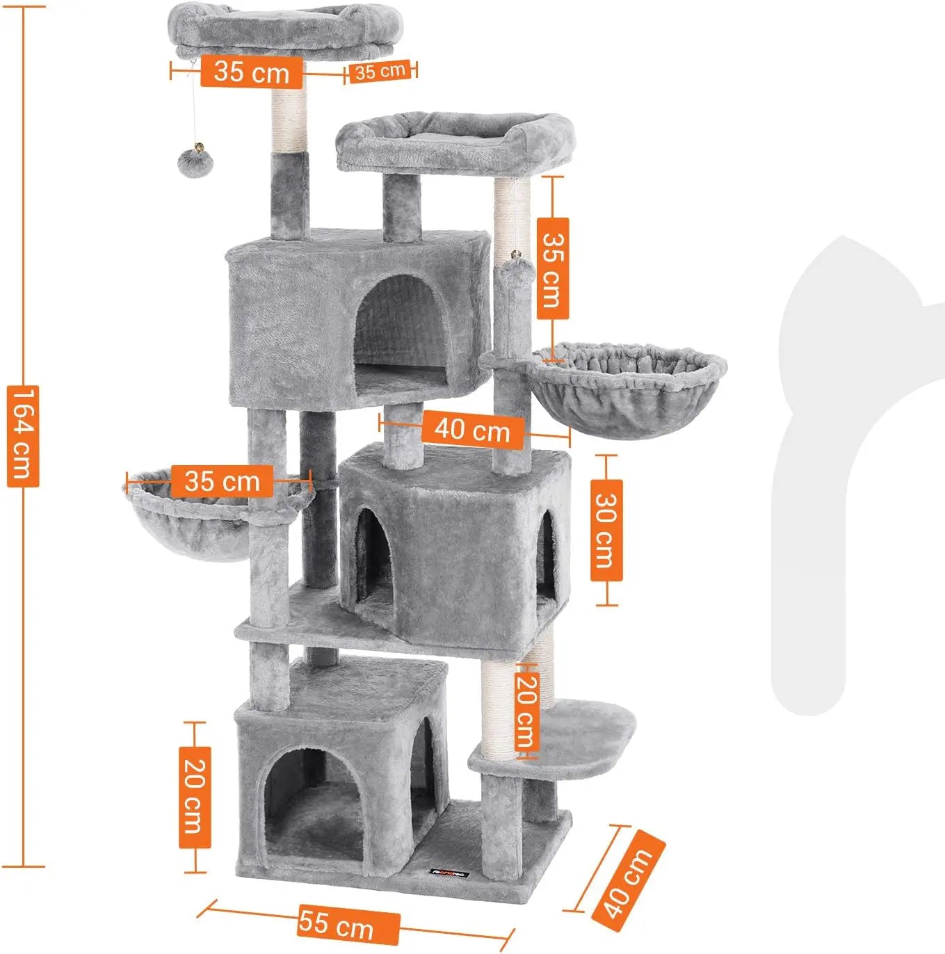 Entdecken Sie den Feandrea Kratzbaum in elegantem Hellgrau – das perfekte Spielparadies für Ihre geliebte Katze! Mit einer beeindruckenden Höhe von 164 cm und ausgestattet mit drei gemütlichen Katzenhöhlen, zwei Liegemulden und zwei gepolsterten Aussichtsplattformen, bietet dieser Kratzbaum ausreichend Platz für eine ganze Katzenfamilie.